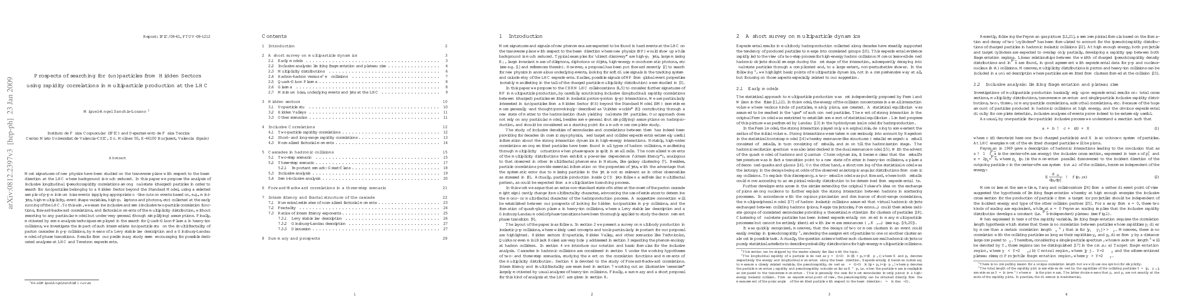 Most signatures of new physics have been studied on the transverse plane with respect to the beam direction at the LHC where background is much reduced. In this paper we propose the analysis of inclusive longitudinal (pseudo)rapidity correlations among final-state (charged) particles in order to search for (un)particles belonging to a Hidden Sector beyond the Standard Model, using a selected sample of p-p minimum bias events (applying appropriate off-line cuts on events based on, e.g., minijets, high-multiplicity, event shape variables, high-pT leptons and photons, etc) collected at the early running of the LHC. To this aim, we examine inclusive and semi-inclusive two-particle correlation functions, forward-backward correlations, and factorial moments of the multiplicity distribution, without resorting to any particular model but under very general (though simplifying) assumptions. Finally, motivated by some analysis techniques employed in the search for Quark-Gluon-Plasma in heavy-ion collisions, we investigate the impact of such intermediate (un)particle stuff on the (multi)fractality of parton cascades in p-p collisions, by means of a Levy stable law description and a Ginzburg-Landau model of phase transitions. Results from our preliminary study seem encouraging for possible dedicated analyses at the LHC and Tevatron experiments.