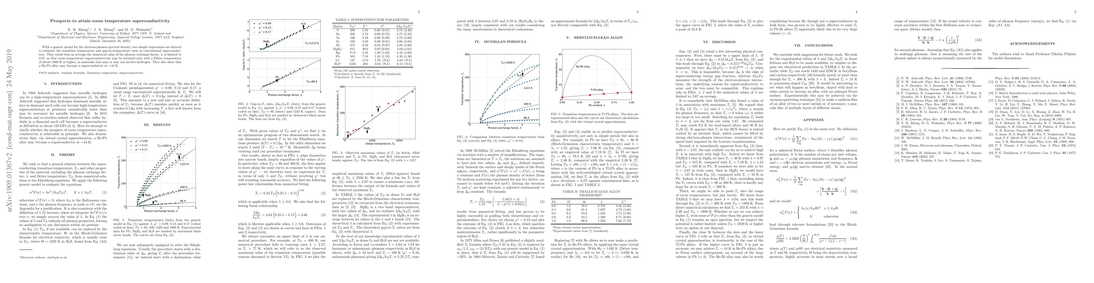 Researchers estimate that room temperature superconductivity is possible in materials with high Debye temperatures (around 1800 K) or specific alloy combinations like Be-Pb, which could achieve superconductivity at around 44 K.