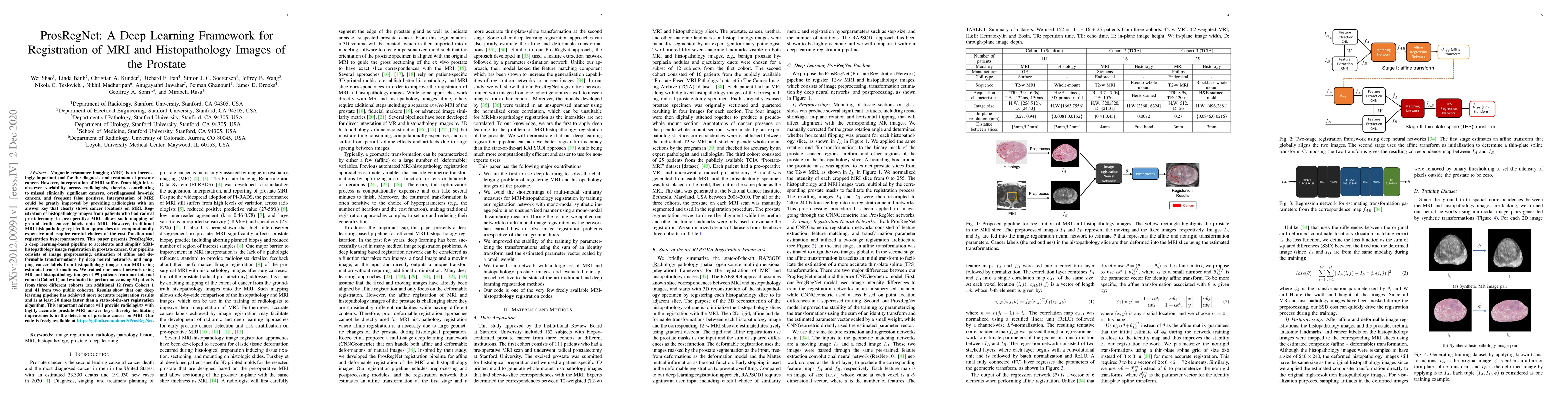 ProsRegNet is a deep learning framework that significantly accelerates MRI-histopathology image registration for prostate cancer, achieving more accurate results and reducing computational costs by at least 20 times compared to traditional methods. This advancement aims to enhance the detection and diagnosis of prostate cancer on MRI by providing radiologists with precise cancer location mappings.