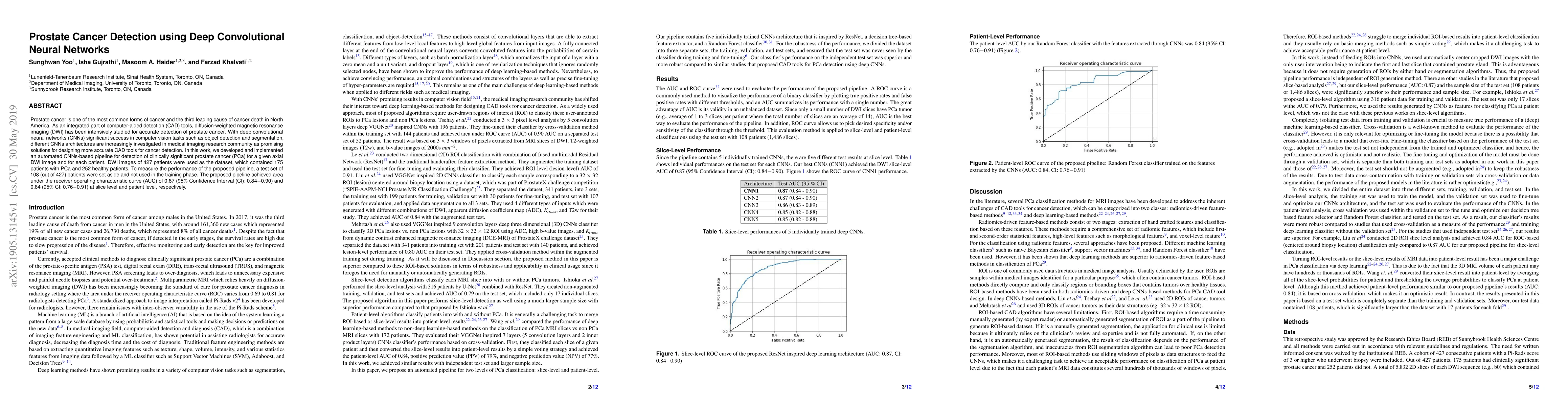 This paper presents an automated deep convolutional neural network (CNN) pipeline for detecting clinically significant prostate cancer using diffusion-weighted imaging (DWI). The proposed method achieved an AUC of 0.87 at slice level and 0.84 at patient level, demonstrating its potential as an accurate computer-aided detection tool.