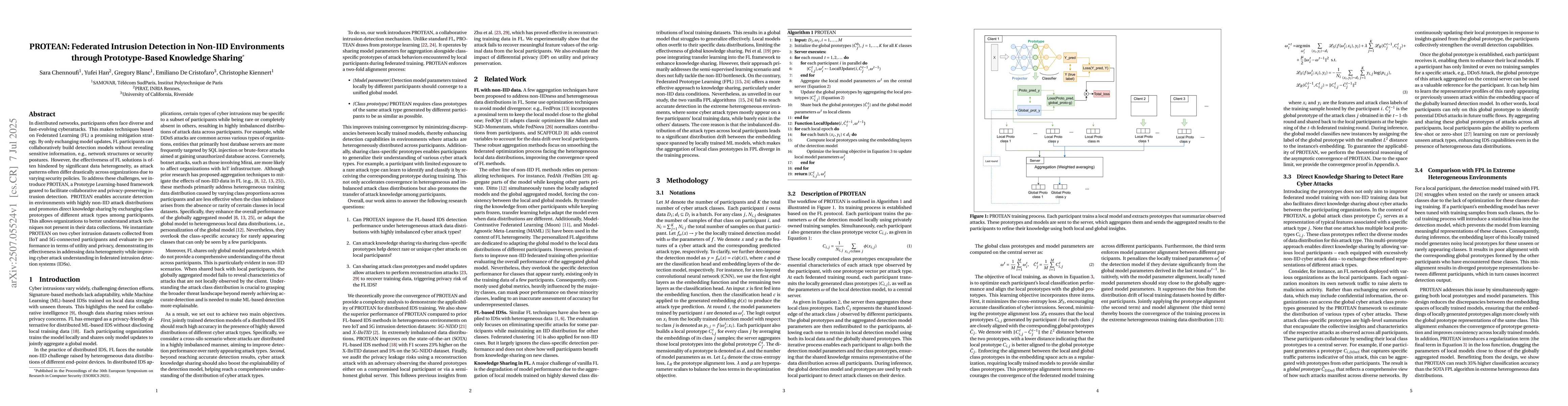 In distributed networks, participants often face diverse and fast-evolving cyberattacks. This makes techniques based on Federated Learning (FL) a promising mitigation strategy. By only exchanging model updates, FL participants can collaboratively build detection models without revealing sensitive information, e.g., network structures or security postures. However, the effectiveness of FL solutions is often hindered by significant data heterogeneity, as attack patterns often differ drastically across organizations due to varying security policies. To address these challenges, we introduce PROTEAN, a Prototype Learning-based framework geared to facilitate collaborative and privacy-preserving intrusion detection. PROTEAN enables accurate detection in environments with highly non-IID attack distributions and promotes direct knowledge sharing by exchanging class prototypes of different attack types among participants. This allows organizations to better understand attack techniques not present in their data collections. We instantiate PROTEAN on two cyber intrusion datasets collected from IIoT and 5G-connected participants and evaluate its performance in terms of utility and privacy, demonstrating its effectiveness in addressing data heterogeneity while improving cyber attack understanding in federated intrusion detection systems (IDSs).