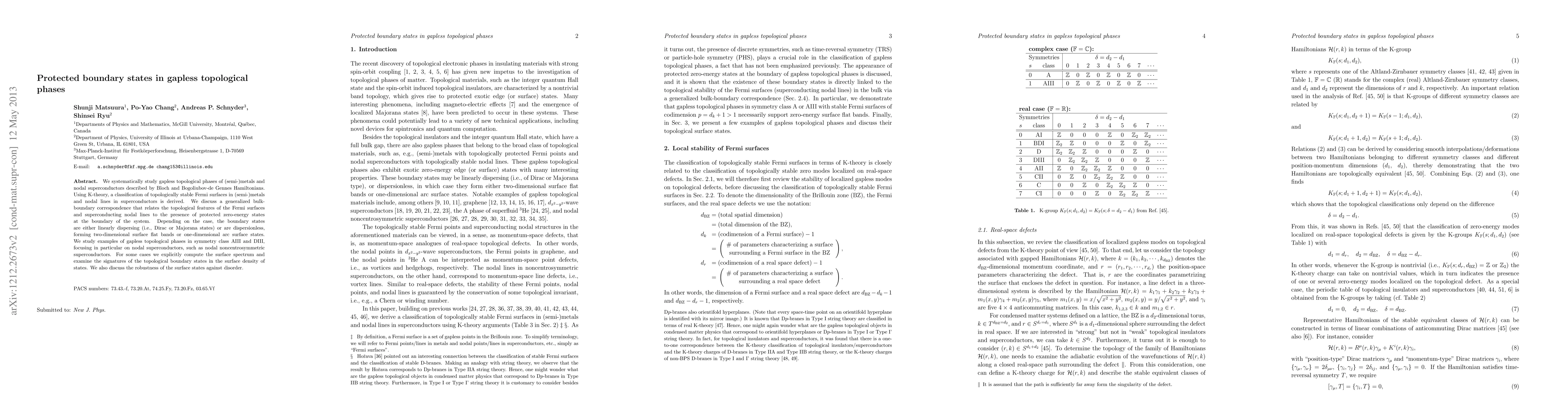This paper classifies topologically stable Fermi surfaces in (semi-)metals and nodal lines in superconductors using K-theory, and explores the generalized bulk-boundary correspondence that links these topological features to protected zero-energy boundary states, including Dirac or Majorana states. It examines gapless topological phases in symmetry classes AIII and DIII, particularly focusing on nodal non-centrosymmetric superconductors.