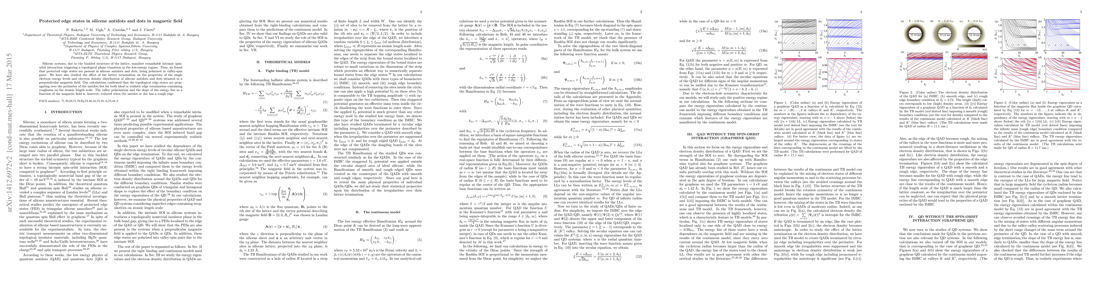 This paper investigates topological edge states in silicene antidots and dots, revealing valley-spin polarized protected edge states in a low-energy regime. The study shows that these topological edge states persist in both ideal and rough edge terminations under a perpendicular magnetic field, though roughness diminishes valley polarization and energy slope.
