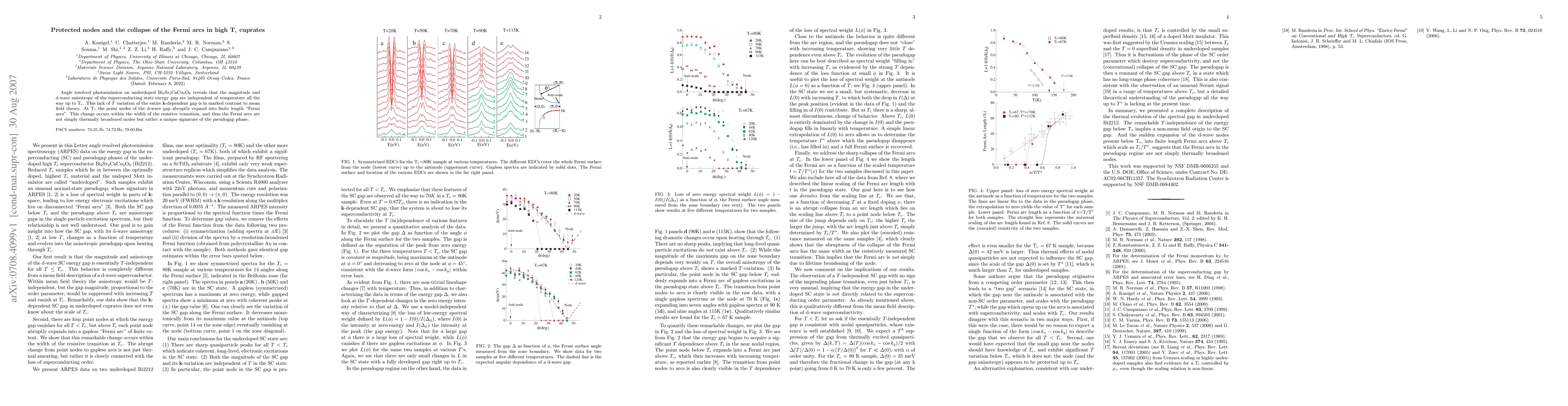 Angle resolved photoemission on underdoped Bi2Sr2CaCu2O8 reveals that the magnitude and d-wave anisotropy of the superconducting state energy gap are independent of temperature all the way up to Tc. This lack of T variation of the entire k-dependent gap is in marked contrast to mean field theory. At Tc the point nodes of the d-wave gap abruptly expand into finite length ``Fermi arcs''. This change occurs within the width of the resistive transition, and thus the Fermi arcs are not simply thermally broadened nodes but rather a unique signature of the pseudogap phase.