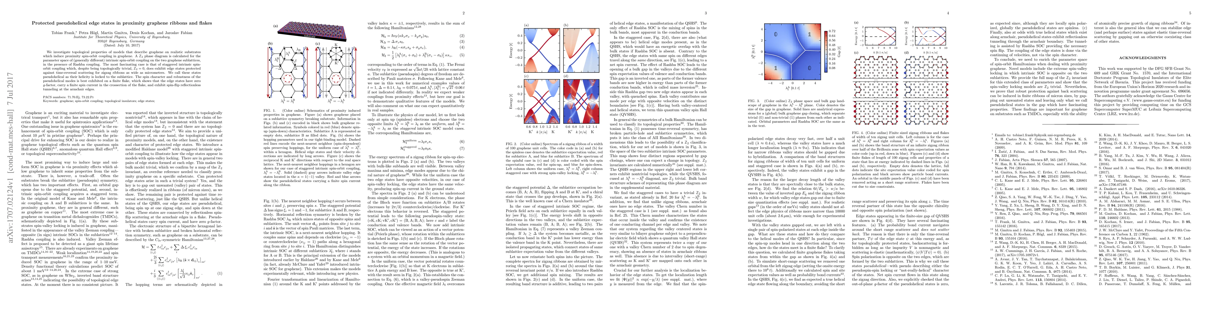 We investigate topological properties of models that describe graphene on realistic substrates which induce proximity spin-orbit coupling in graphene. A $\mathbb{Z}_2$ phase diagram is calculated for the parameter space of (generally different) intrinsic spin-orbit coupling on the two graphene sublattices, in the presence of Rashba coupling. The most fascinating case is that of staggered intrinsic spin-orbit coupling which, despite being topologically trivial, $\mathbb{Z}_2 = 0$, does exhibit edge states protected against time-reversal scattering for zigzag ribbons as wide as micrometers. We call these states pseudohelical as their helicity is locked to the sublattice. The spin character and robustness of the pseudohelical modes is best exhibited on a finite flake, which shows that the edge states have zero $g$-factor, carry a finite spin current in the crossection of the flake, and exhibit spin-flip reflectionless tunneling at the armchair edges.