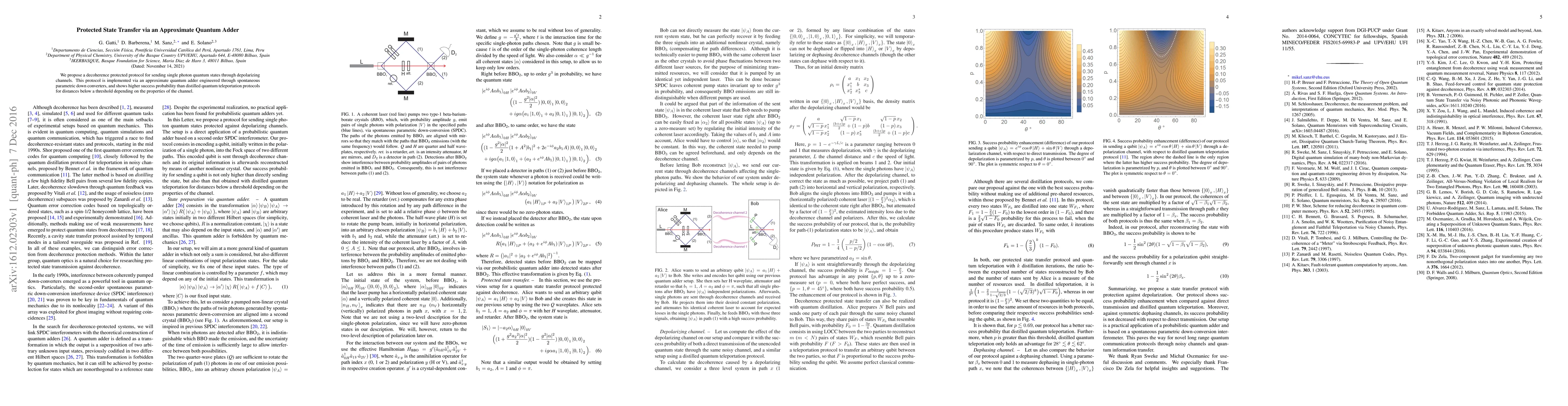 We propose a decoherence protected protocol for sending single photon quantum states through depolarizing channels. This protocol is implemented via an approximate quantum adder engineered through spontaneous parametric down converters, and shows higher success probability than distilled quantum teleportation protocols for distances below a threshold depending on the properties of the channel.