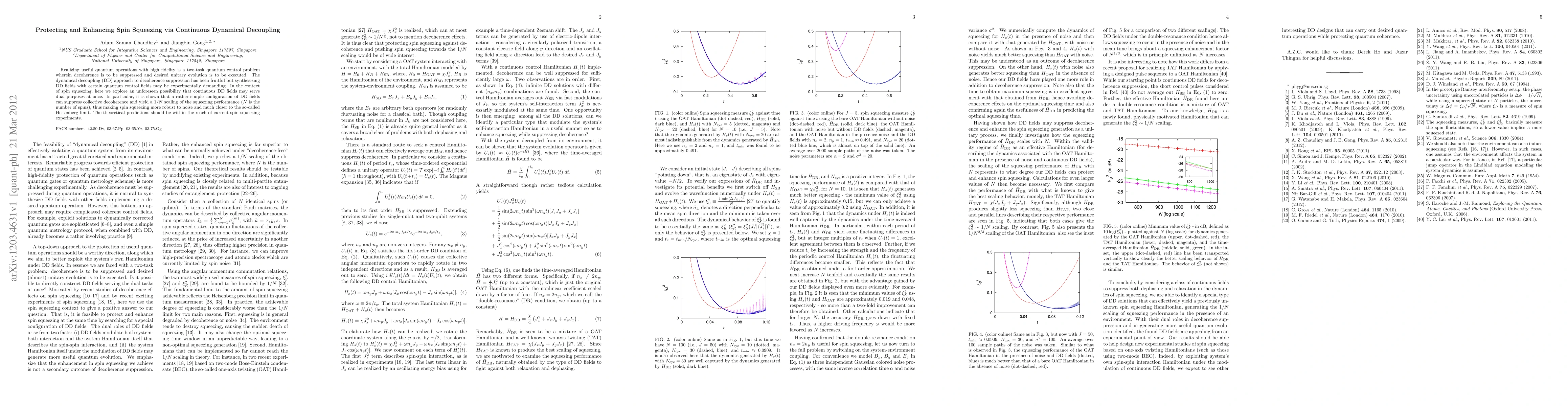 This paper investigates how continuous dynamical decoupling (DD) fields can simultaneously suppress decoherence and enhance spin squeezing, achieving a 1/N scaling that brings performance closer to the Heisenberg limit. This approach offers a simpler method for achieving robust spin squeezing in quantum operations.