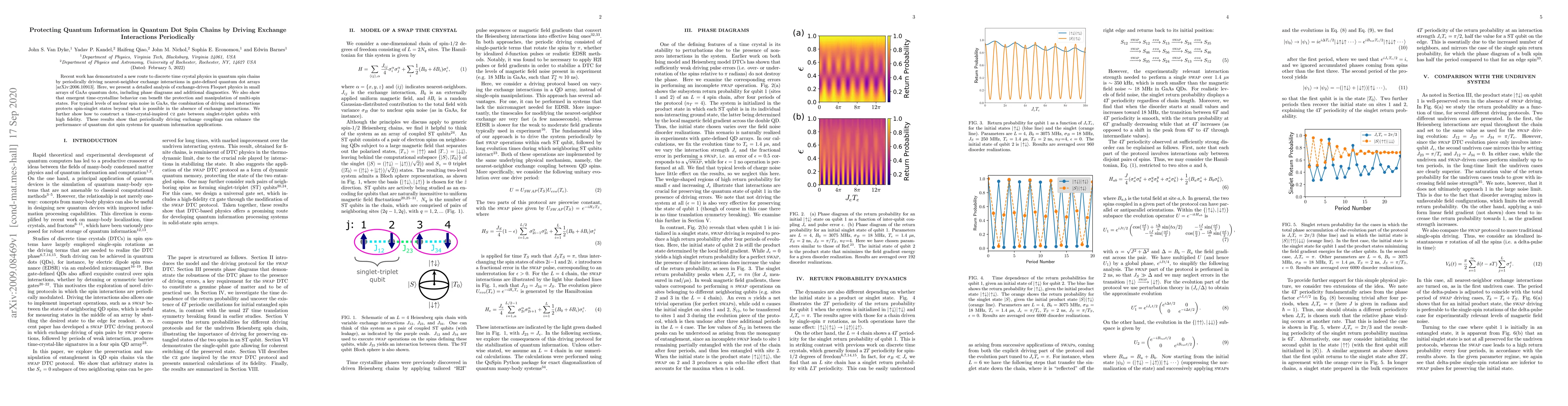 Recent work has demonstrated a new route to discrete time crystal physics in quantum spin chains by periodically driving nearest-neighbor exchange interactions in gate-defined quantum dot arrays [arXiv:2006.10913]. Here, we present a detailed analysis of exchange-driven Floquet physics in small arrays of GaAs quantum dots, including phase diagrams and additional diagnostics. We also show that emergent time-crystalline behavior can benefit the protection and manipulation of multi-spin states. For typical levels of nuclear spin noise in GaAs, the combination of driving and interactions protects spin-singlet states beyond what is possible in the absence of exchange interactions. We further show how to construct a time-crystal-inspired CZ gate between singlet-triplet qubits with high fidelity. These results show that periodically driving exchange couplings can enhance the performance of quantum dot spin systems for quantum information applications.