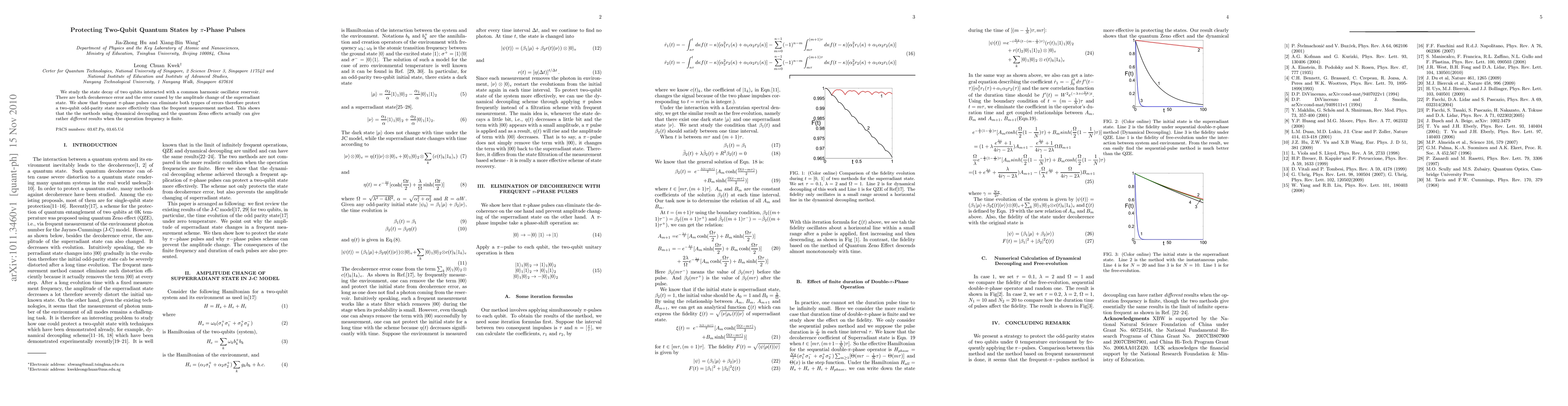 We study the state decay of two qubits interacted with a common harmonic oscillator reservoir. There are both decoherence error and the error caused by the amplitude change of the superradiant state. We show that frequent $\pi$-phase pulses can eliminate both typpes of errors therefore protect a two-qubit odd-parity state more effectively than the frequent measurement method. This shows that the the methods using dynamical decoupling and the quantum Zeno effects actually can give rather {\em different} results when the operation frequency is finite.