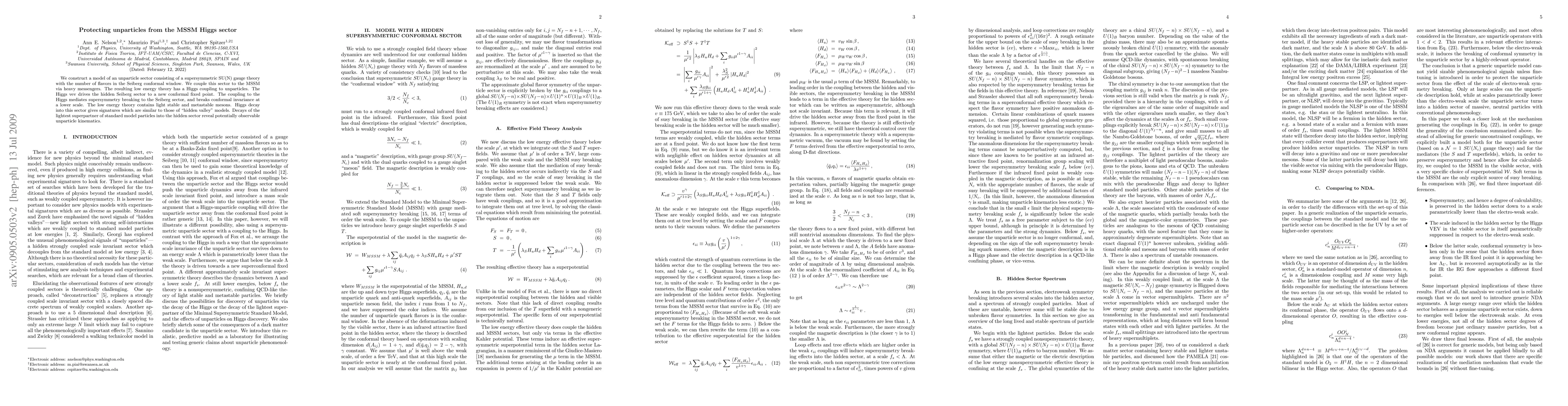 This paper constructs a supersymmetric SU(N) gauge theory with an unparticle sector, coupling it to the MSSM via heavy messengers. The Higgs vev induces a new conformal fixed point and mediates supersymmetry breaking, leading to light stable and metastable mesons in the low energy theory, with potential observable signatures similar to "hidden valley" models.