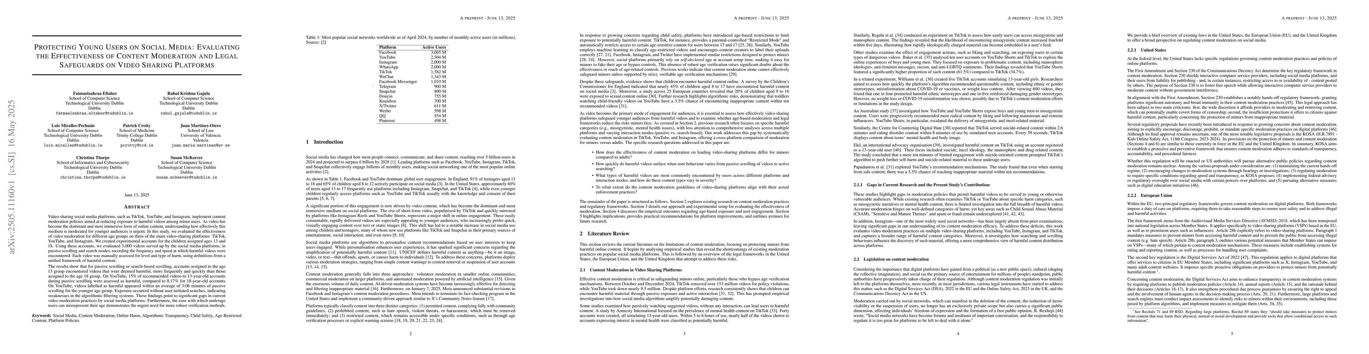 This research highlights significant gaps in current video moderation practices by social media platforms, emphasizing the urgent need for improved content filtering and age verification methods to protect young users.