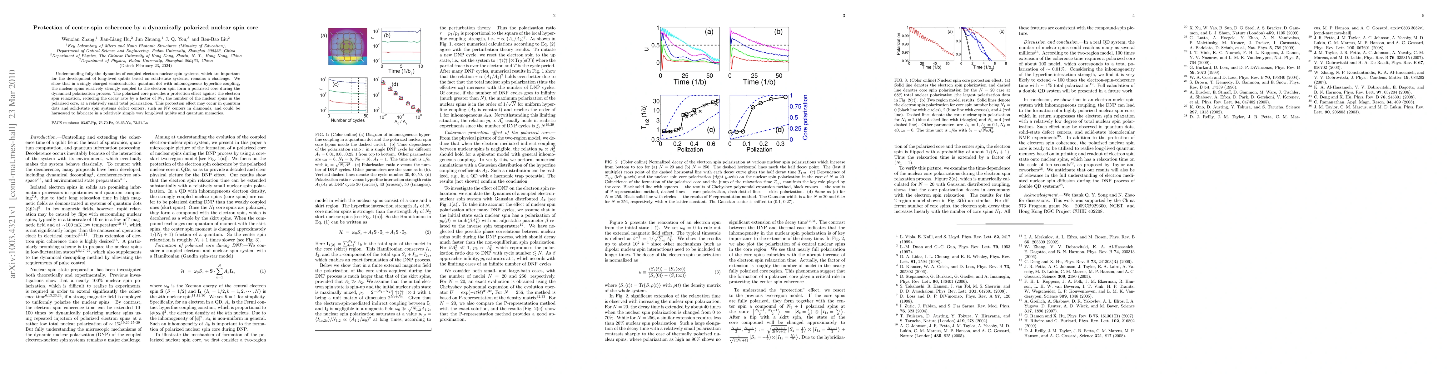 Understanding fully the dynamics of coupled electron-nuclear spin systems, which are important for the development of long-lived qubits based on solid-state systems, remains a challenge. We show that in a singly charged semiconductor quantum dot with inhomogeneous hyperfine coupling, the nuclear spins relatively strongly coupled to the electron spin form a polarized core during the dynamical polarization process. The polarized core provides a protection effect against the electron spin relaxation, reducing the decay rate by a factor of $N_1$, the number of the nuclear spins in the polarized core, at a relatively small total polarization. This protection effect may occur in quantum dots and solid-state spin systems defect centers, such as NV centers in diamonds, and could be harnessed to fabricate in a relatively simple way long-lived qubits and quantum memories.
