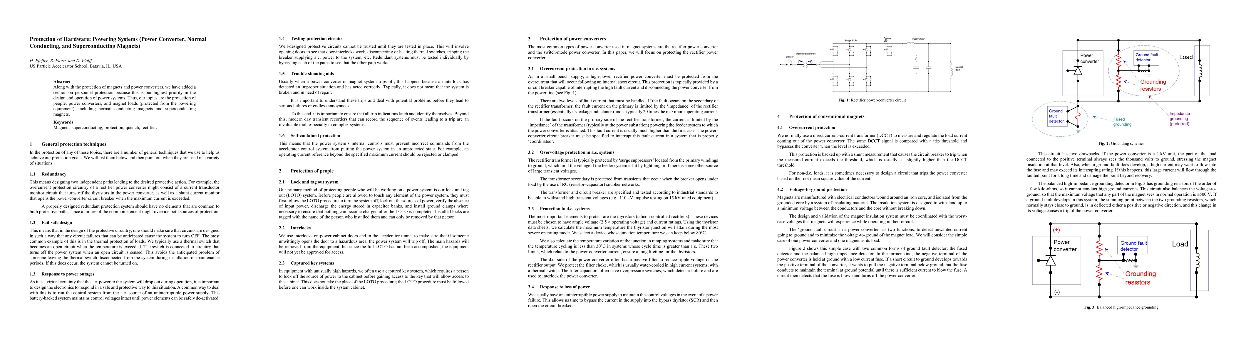 Along with the protection of magnets and power converters, we have added a section on personnel protection because this is our highest priority in the design and operation of power systems. Thus, our topics are the protection of people, power converters, and magnet loads (protected from the powering equipment), including normal conducting magnets and superconducting magnets.