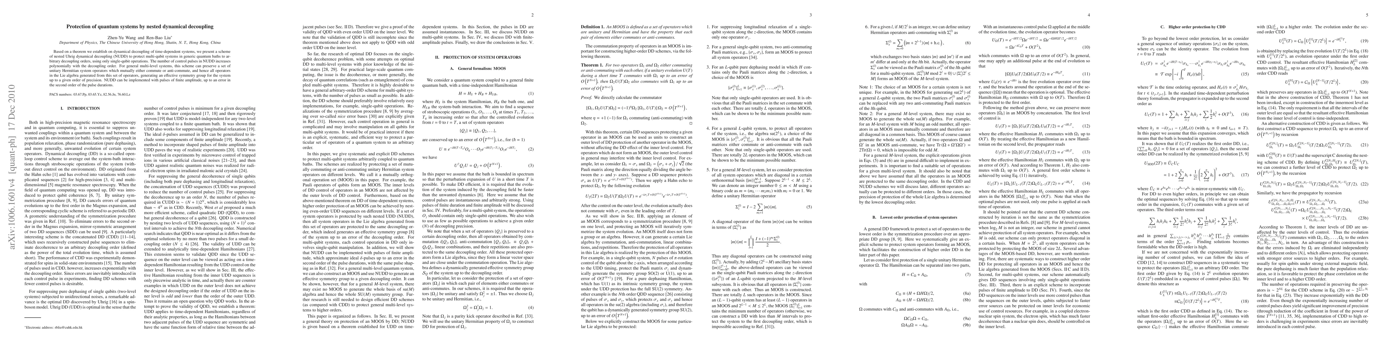 The main technical contribution of this work is the establishment of a theorem on dynamical decoupling and the presentation of a new scheme (NUDD) for protecting multi-qubit systems.