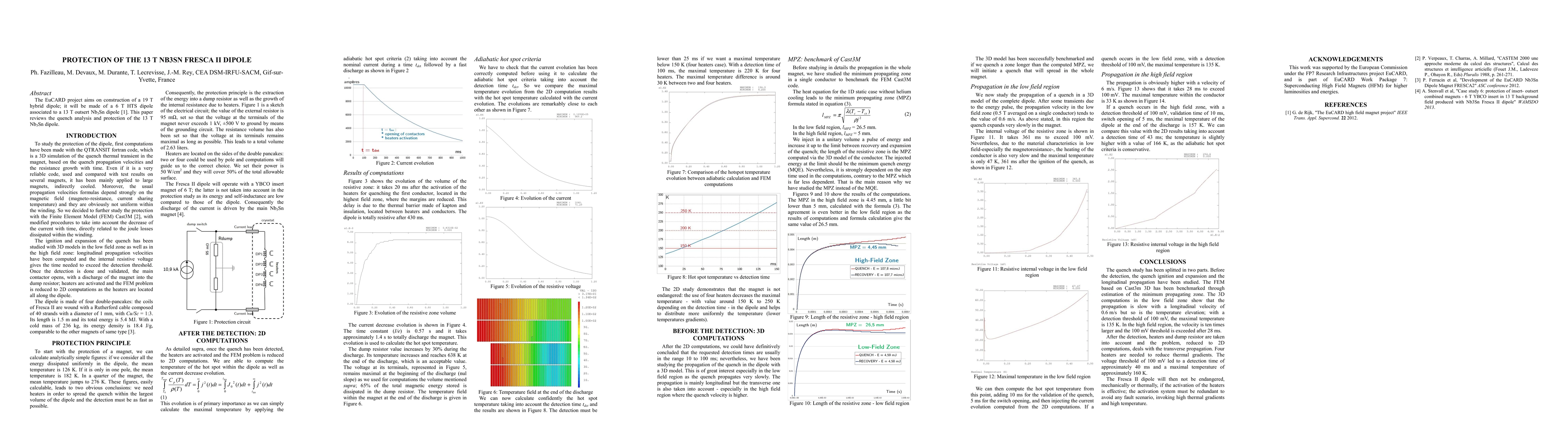 The EuCARD project aims on construction of a 19 T hybrid dipole; it will be made of a 6 T HTS dipole associated to a 13 T outsert Nb3Sn dipole [1]. This paper reviews the quench analysis and protection of the 13 T Nb3Sn dipole.