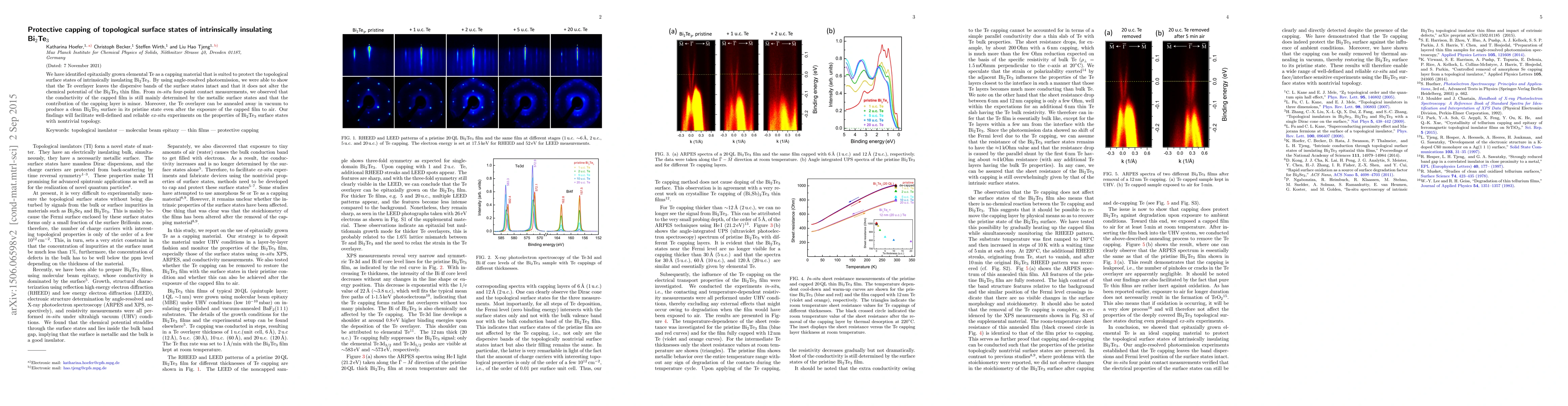 This study identifies epitaxially grown Te as an effective capping material for protecting the topological surface states of insulating Bi$_2$Te$_3$, maintaining the surface states' integrity and minimalizing conductivity impact. The Te overlayer can be removed to restore the pristine Bi$_2$Te$_3$ surface, aiding reliable ex-situ experiments on its topological properties.
