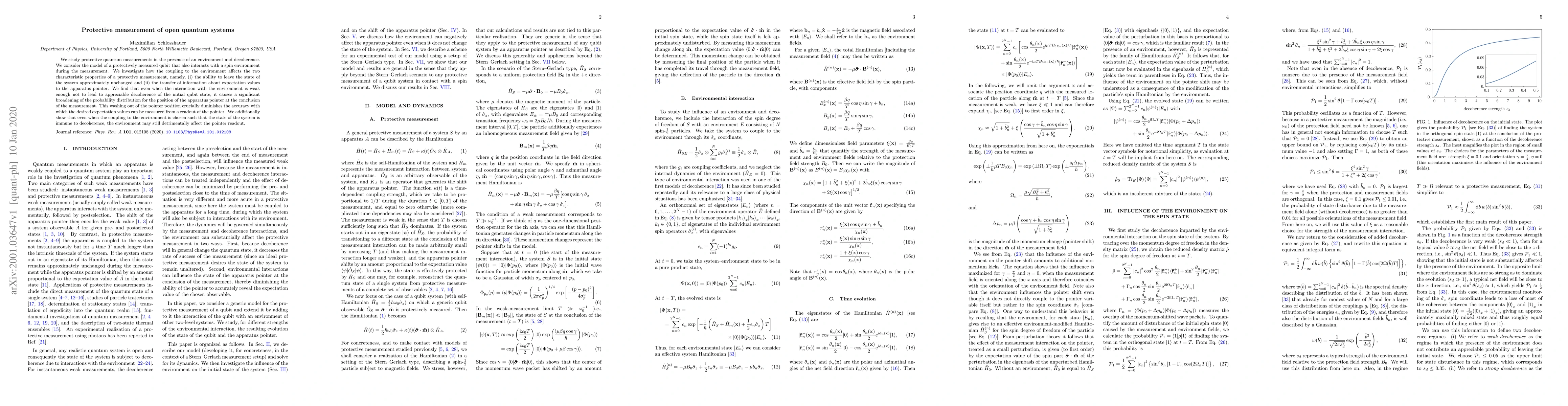 We study protective quantum measurements in the presence of an environment and decoherence. We consider the model of a protectively measured qubit that also interacts with a spin environment during the measurement. We investigate how the coupling to the environment affects the two characteristic properties of a protective measurement, namely, (i) the ability to leave the state of the system approximately unchanged and (ii) the transfer of information about expectation values to the apparatus pointer. We find that even when the interaction with the environment is weak enough not to lead to appreciable decoherence of the initial qubit state, it causes a significant broadening of the probability distribution for the position of the apparatus pointer at the conclusion of the measurement. This washing out of the pointer position crucially diminishes the accuracy with which the desired expectation values can be measured from a readout of the pointer. We additionally show that even when the coupling to the environment is chosen such that the state of the system is immune to decoherence, the environment may still detrimentally affect the pointer readout.