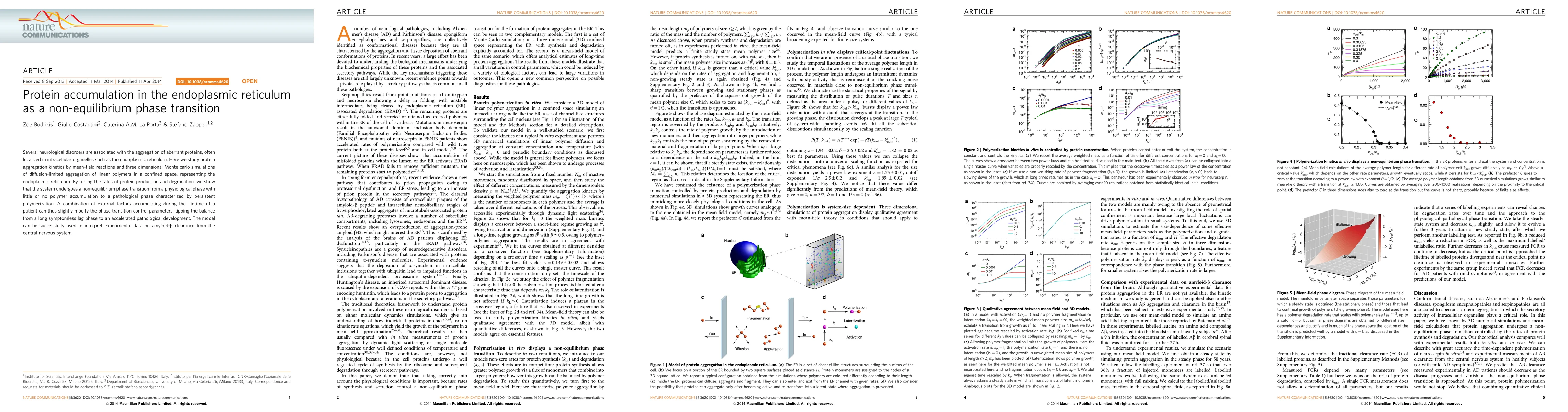 This paper investigates protein aggregation in the endoplasmic reticulum using reaction-kinetics and simulation models, demonstrating a non-equilibrium phase transition from a healthy state to a pathological state characterized by persistent protein polymerization. The model explains how external factors can influence the transition, potentially leading to neurological disorders.
