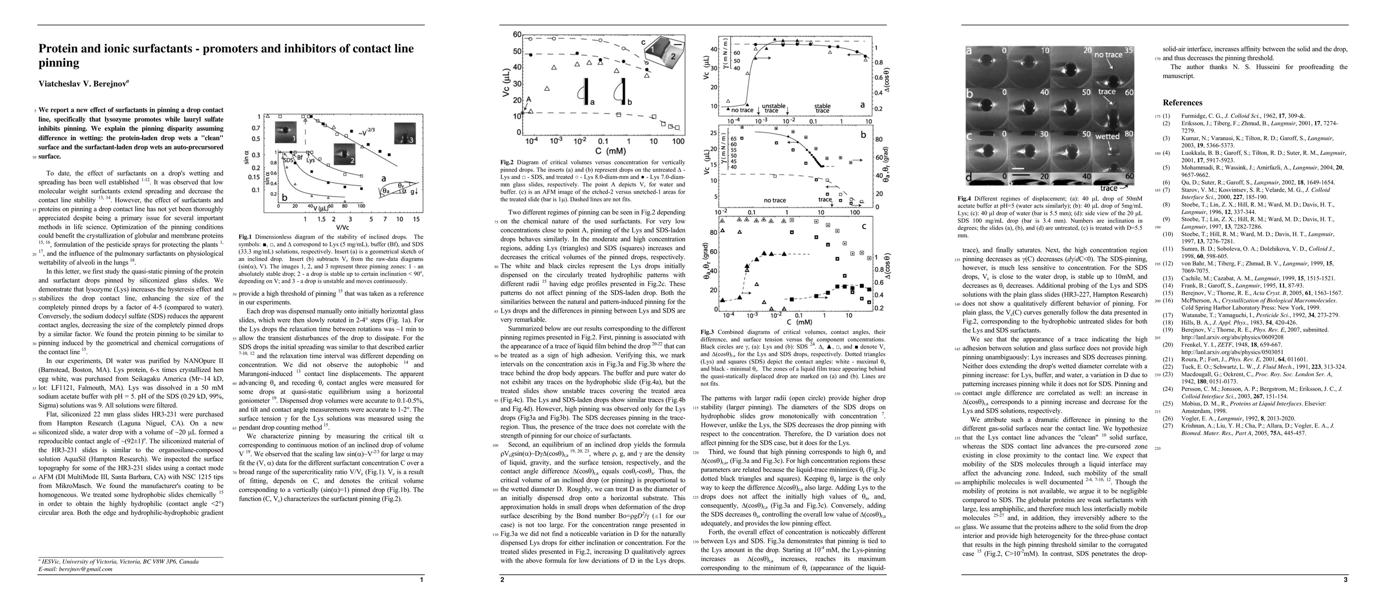 We report a new effect of surfactants in pinning a drop contact line, specifically that lysozyme promotes while lauryl sulfate inhibits pinning. We explain the pinning disparity assuming difference in wetting: the protein-laden drop wets a "clean" surface and the surfactant-laden drop wets an auto-precursored surface.