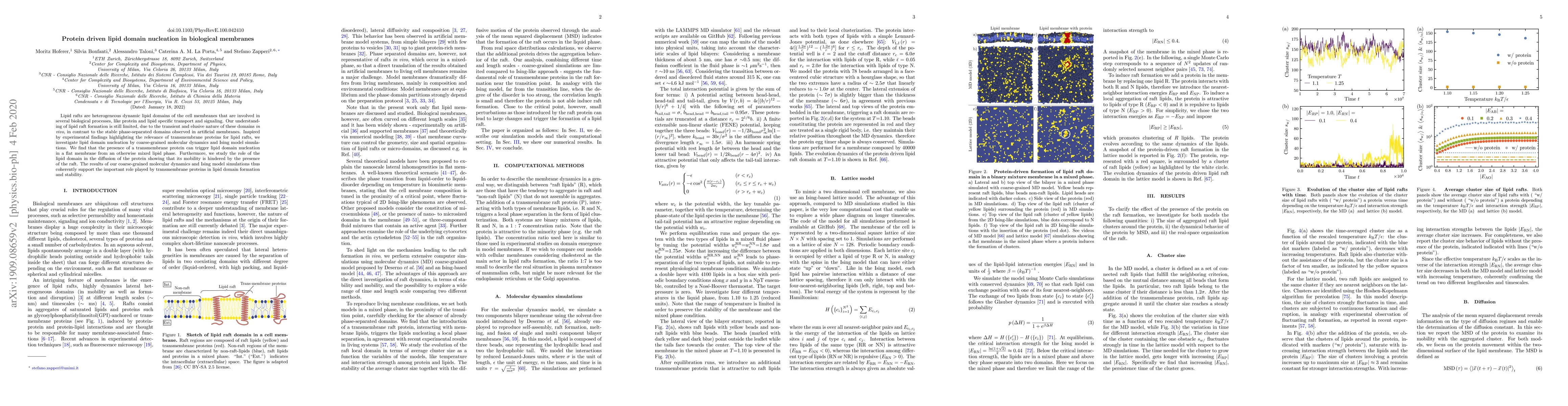 This paper investigates how transmembrane proteins can trigger the nucleation of lipid domains in biological membranes using coarse-grained molecular dynamics and Ising model simulations. The findings show that these proteins can induce lipid domain formation in a mixed lipid phase and affect the diffusion of the protein by hindering its mobility within the raft.