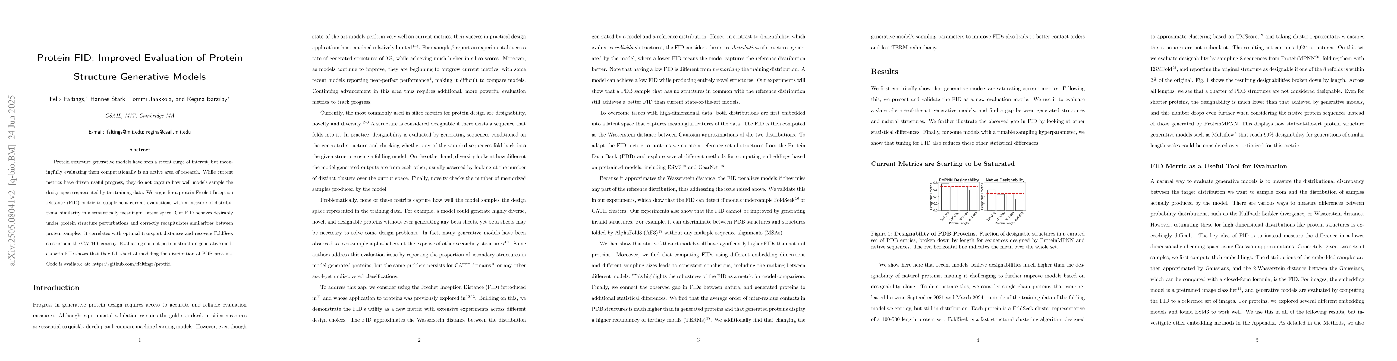 The paper proposes a protein Frechet Inception Distance (FID) metric to evaluate protein structure generative models, aiming to capture distributional similarity in a semantically meaningful latent space.