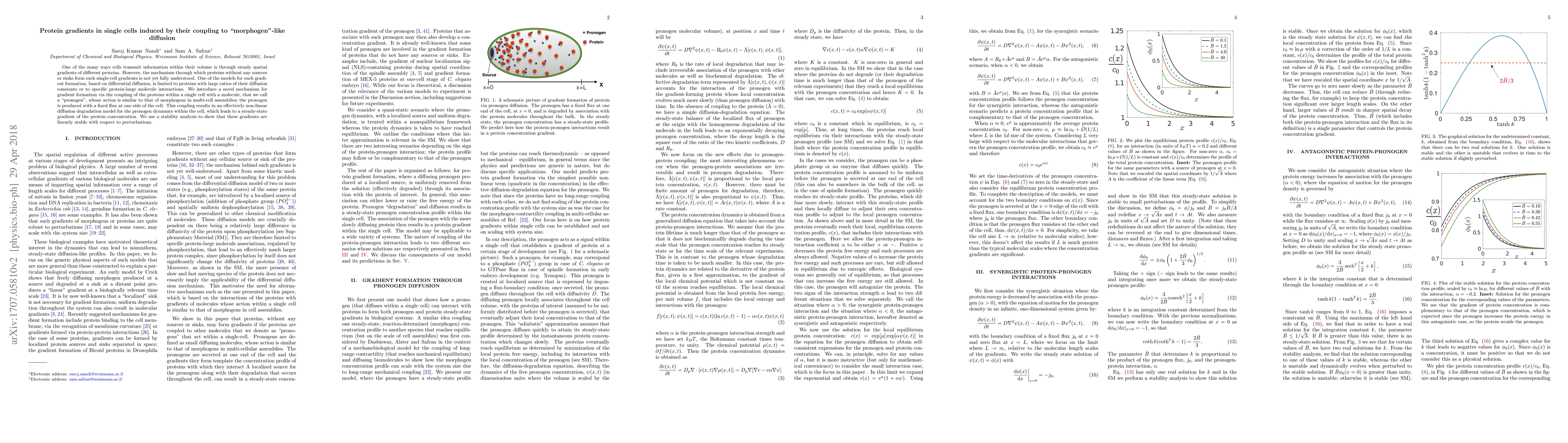 One of the many ways cells transmit information within their volume is through steady spatial gradients of different proteins. However, the mechanism through which proteins without any sources or sinks form such single-cell gradients is not yet fully understood. One of the models for such gradient formation, based on differential diffusion, is limited to proteins with large ratios of their diffusion constants or to specific protein-large molecule interactions. We introduce a novel mechanism for gradient formation via the coupling of the proteins within a single cell with a molecule, that we call a "pronogen", whose action is similar to that of morphogens in multi-cell assemblies, the pronogen is produced with a fixed flux at one side of the cell. This coupling results in an effectively non-linear diffusion degradation model for the pronogen dynamics within the cell, which leads to a steady-state gradient of the protein concentration. We use a stability analysis to show that these gradients are linearly stable with respect to perturbations.