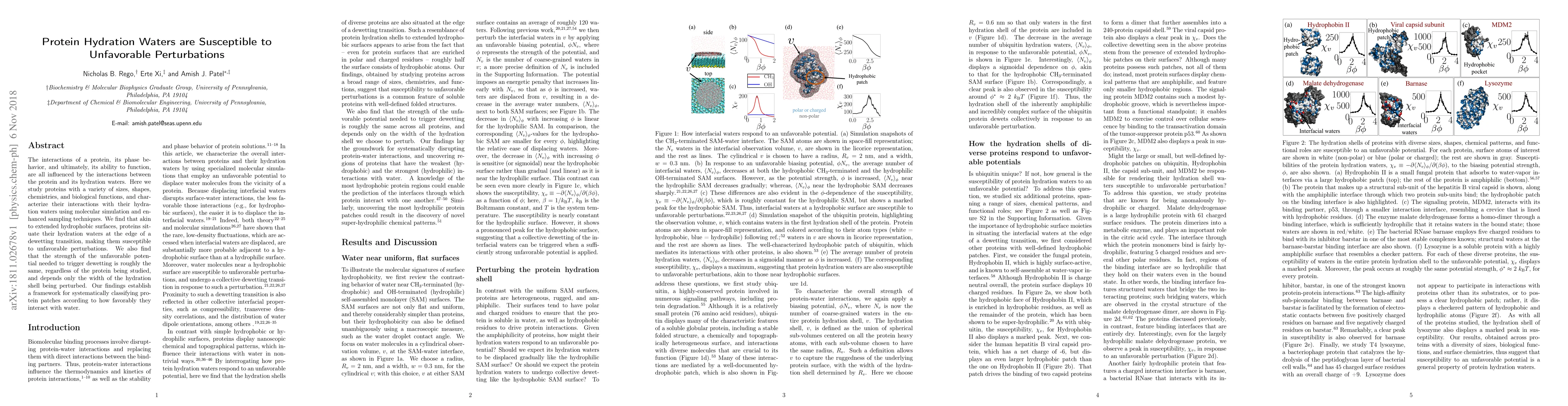 The interactions of a protein, its phase behavior, and ultimately, its ability to function, are all influenced by the interactions between the protein and its hydration waters. Here we study proteins with a variety of sizes, shapes, chemistries, and biological functions, and characterize their interactions with their hydration waters using molecular simulation and enhanced sampling techniques. We find that akin to extended hydrophobic surfaces, proteins situate their hydration waters at the edge of a dewetting transition, making them susceptible to unfavorable perturbations. We also find that the strength of the unfavorable potential needed to trigger dewetting is roughly the same, regardless of the protein being studied, and depends only the width of the hydration shell being perturbed. Our findings establish a framework for systematically classifying protein patches according to how favorably they interact with water.