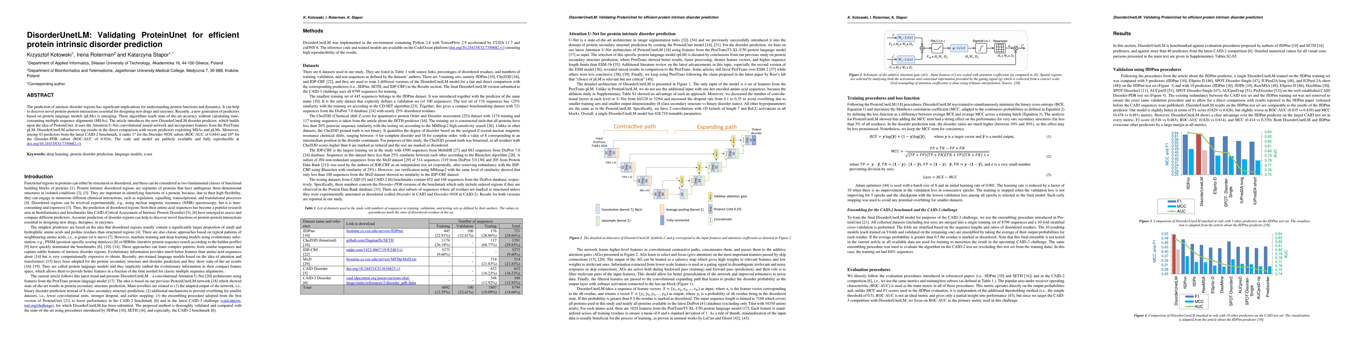 This paper introduces DisorderUnetLM, a novel predictor for protein intrinsic disorder using an Attention U-Net model with ProtTrans protein language model features, achieving state-of-the-art results compared to other predictors in benchmark tests. It ranks 9th overall and 1st in specific subsets in the latest CAID-2 assessment.