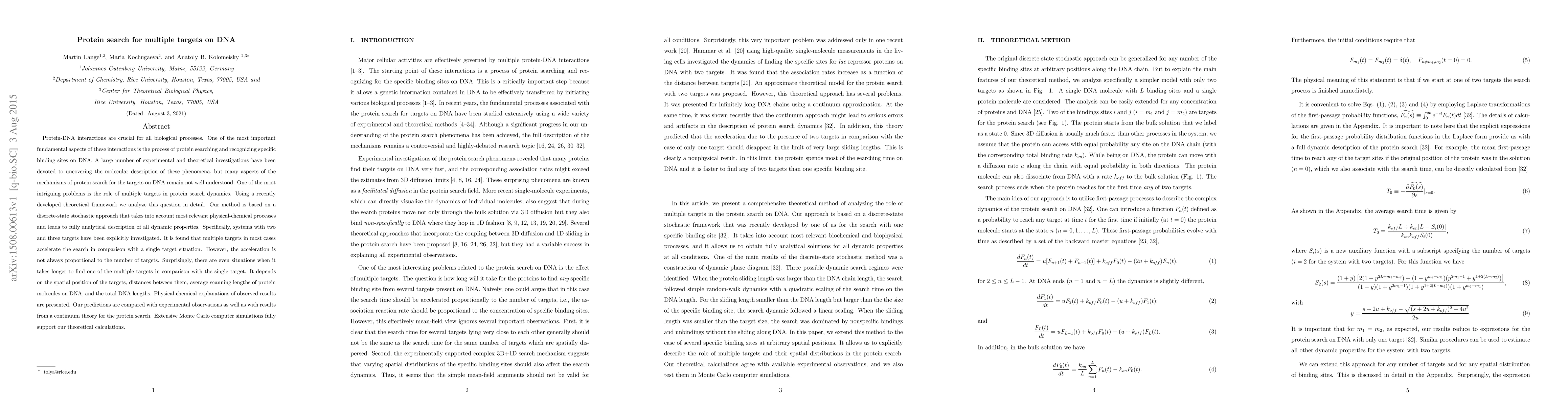 Researchers used a new theoretical framework to study how proteins search for multiple targets on DNA, finding that multiple targets can sometimes speed up or slow down the search process depending on their position and distance from each other.