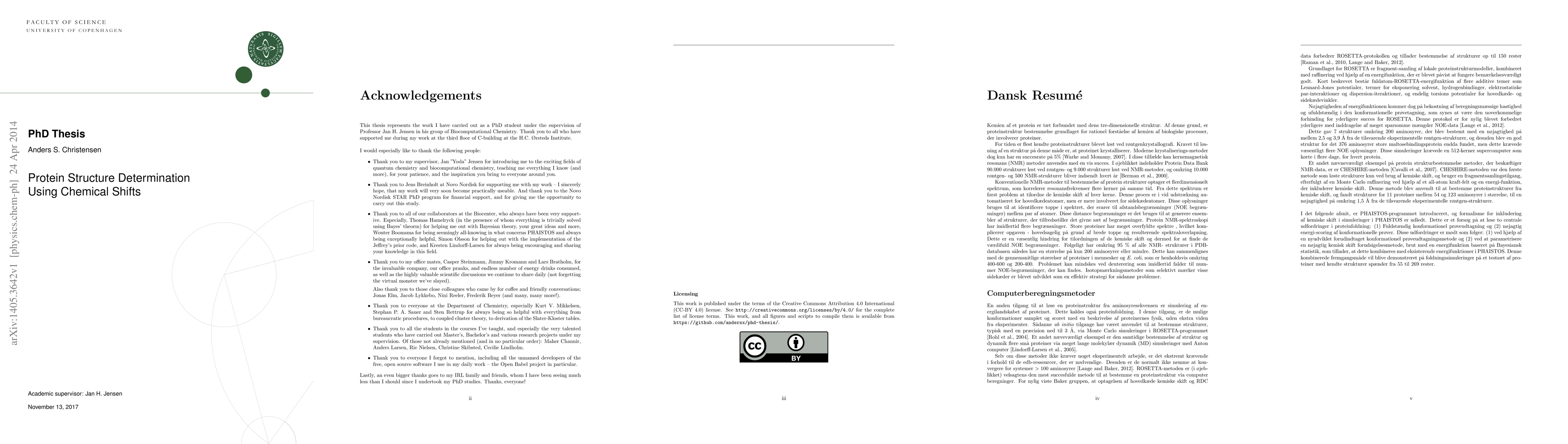 Summary: This PhD thesis introduces an innovative method for determining protein structures based on chemical shifts, offering a new approach to structural biology. The method leverages detailed chemical shift data to infer accurate protein conformations.