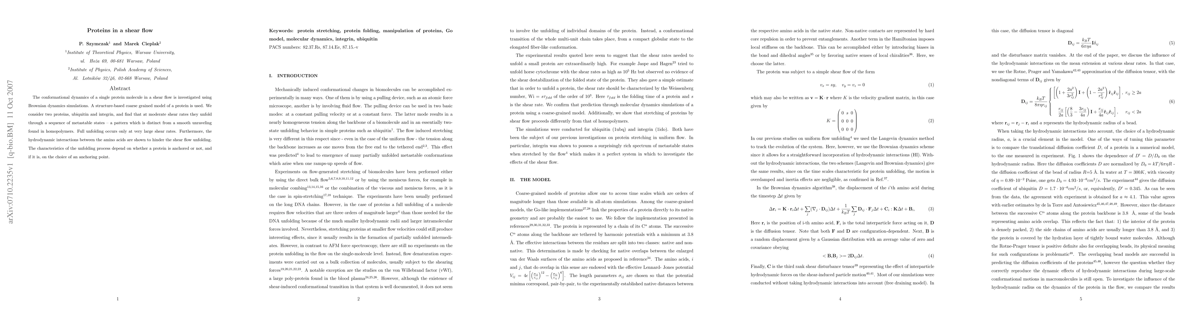 Proteins in a shear flow can unfold through metastable states, hindered by hydrodynamic interactions, at moderate shear rates. Full unfolding occurs only at very large shear rates, depending on whether the protein is anchored or not.