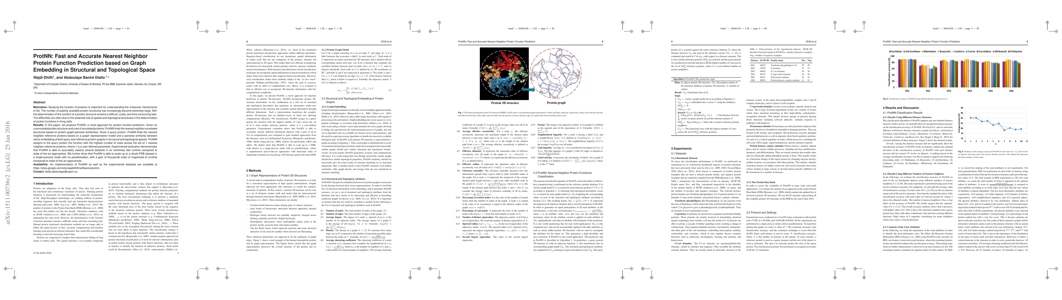 ProtNN is a novel method for fast and accurate protein function prediction using graph embedding in structural and topological space. It efficiently identifies the nearest neighbor annotated proteins based on graph similarity and assigns functions via majority voting among k nearest neighbors, demonstrating significant speed and accuracy improvements over existing methods.