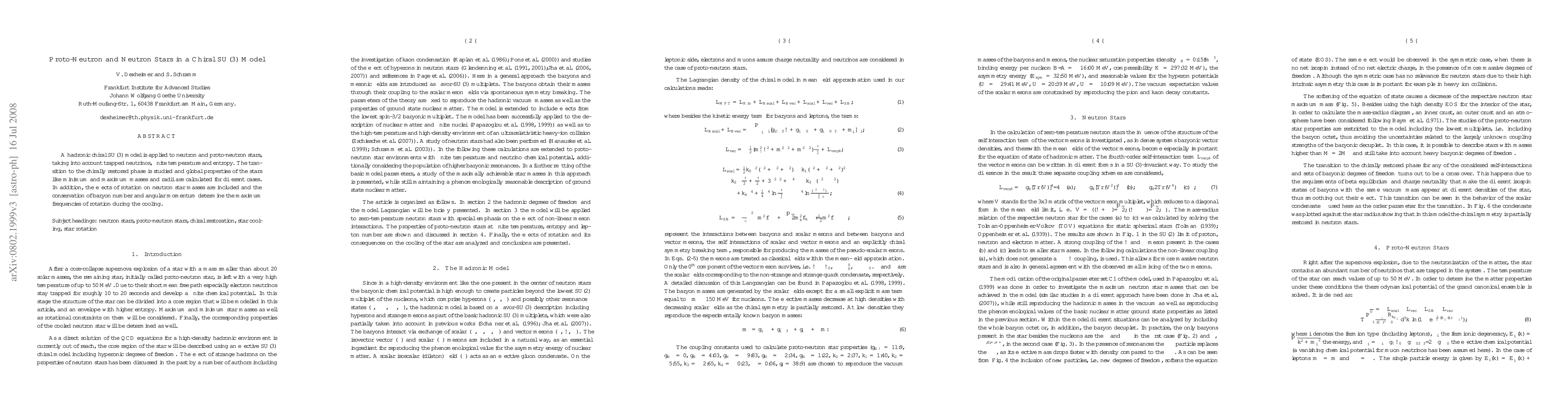 This study uses a hadronic chiral SU(3) model to investigate neutron and proto-neutron stars, considering trapped neutrinos, finite temperature, and entropy. It examines the transition to the chirally restored phase and calculates the stars' global properties, including minimum and maximum masses and radii, while also accounting for rotational effects on neutron star masses.