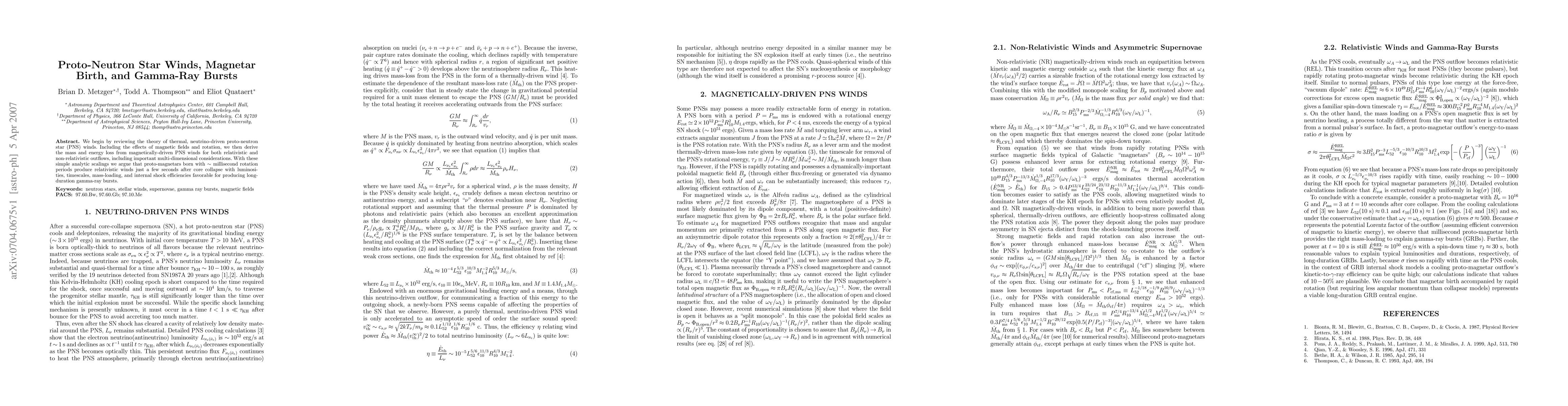 This paper explores the dynamics of proto-neutron star winds, emphasizing the role of magnetic fields and rotation in driving these winds. It concludes that proto-magnetars with millisecond rotation periods can generate relativistic winds capable of producing long-duration gamma-ray bursts shortly after core collapse.