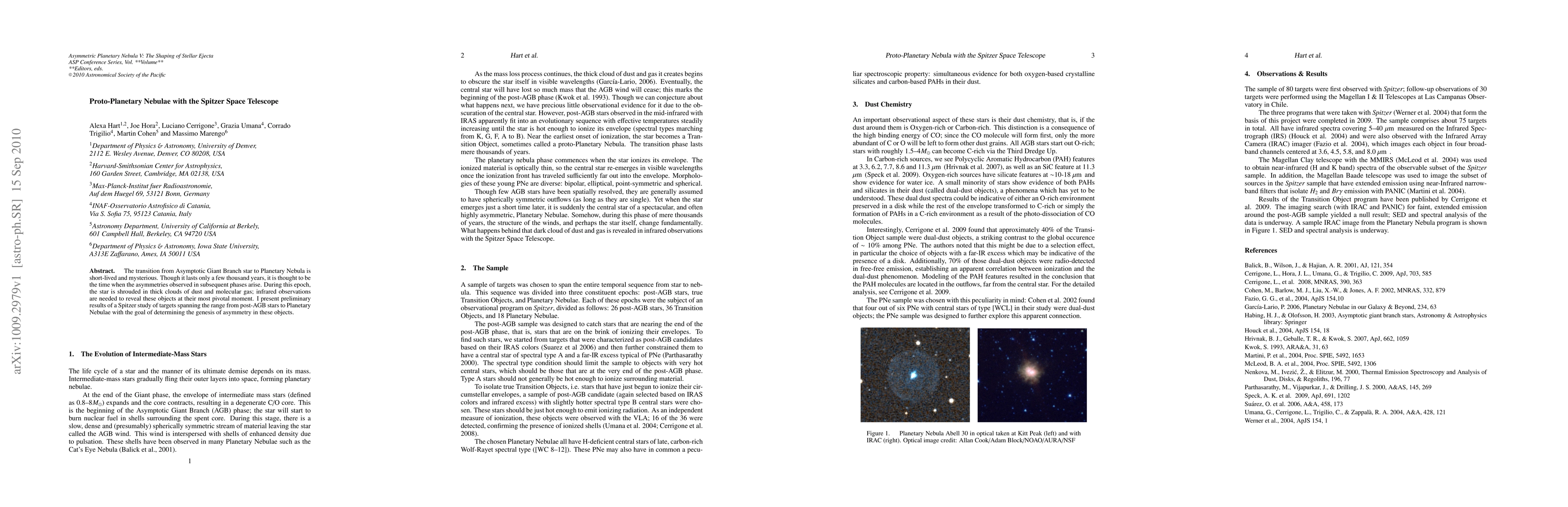 The transition from Asymptotic Giant Branch star to Planetary Nebula is short-lived and mysterious. Though it lasts only a few thousand years, it is thought to be the time when the asymmetries observed in subsequent phases arise. During this epoch, the star is shrouded in thick clouds of dust and molecular gas; infrared observations are needed to reveal these objects at their most pivotal moment. I present preliminary results of a Spitzer study of targets spanning the range from post-AGB stars to Planetary Nebulae with the goal of determining the genesis of asymmetry in these objects.
