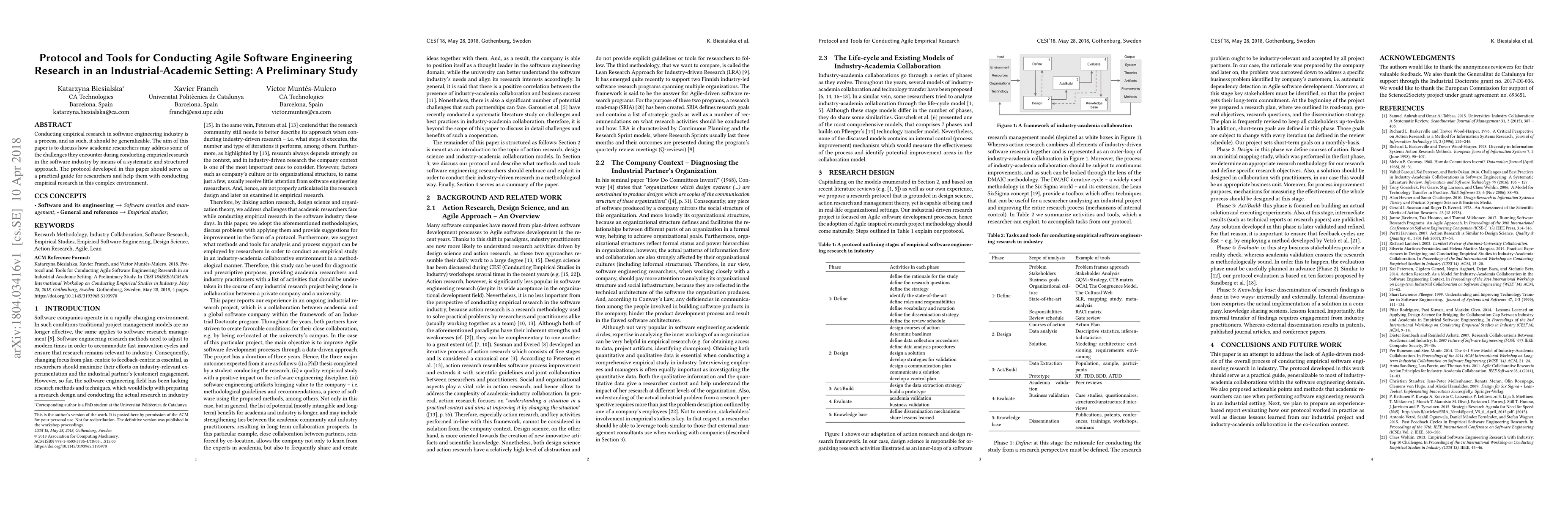 This paper presents a protocol and tools for conducting empirical agile software engineering research in industrial-academic settings, aiming to address challenges faced by academic researchers and provide a structured approach for generalizable studies. The developed protocol serves as a practical guide for researchers to navigate the complexities of industry-based research.