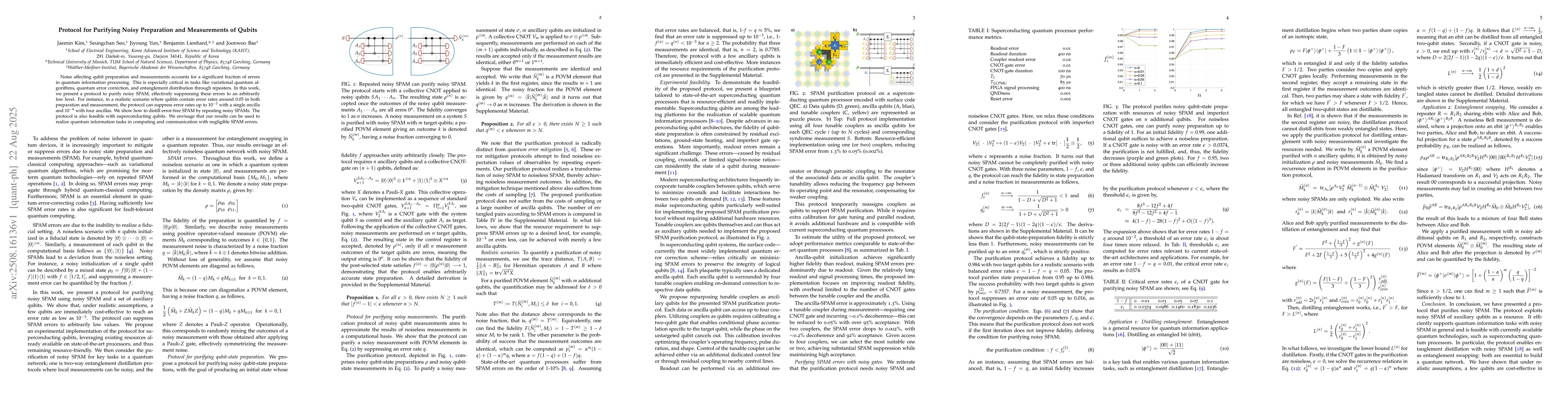 Noise affecting qubit preparation and measurements accounts for a significant fraction of errors in quantum information processing. This is especially critical in tasks like variational quantum algorithms, quantum error correction, and entanglement distribution through repeaters. In this work, we present a protocol to purify noisy SPAM, effectively suppressing these errors to an arbitrarily low level. For instance, in a realistic scenario where qubits contain error rates around $0.05$ in both preparation and measurement, the protocol can suppress error rates up to $10^{-3}$ with a single ancilla and $10^{-6}$ with four ancillas. We show how to distill error-free SPAM by repeating noisy SPAMs. The protocol is also feasible with superconducting qubits. We envisage that our results can be used to realize quantum information tasks in computing and communication with negligible SPAM errors.