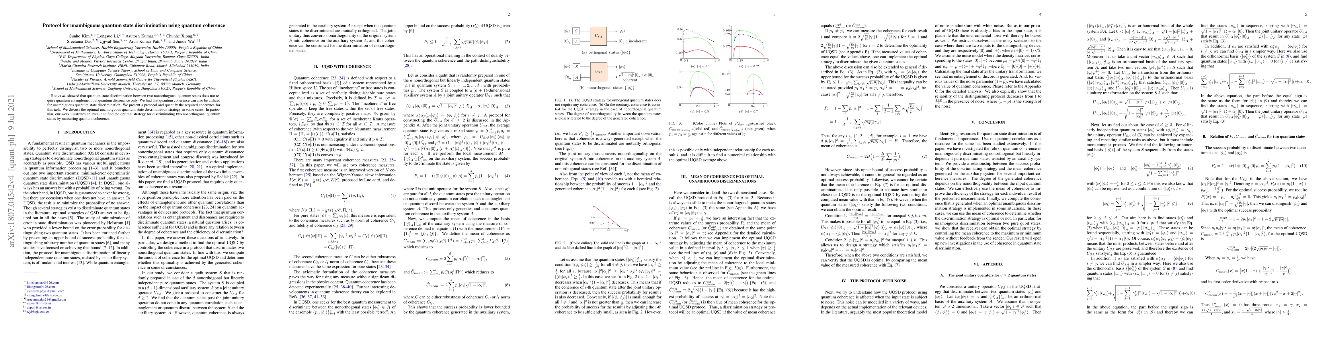 This paper presents a protocol for unambiguous quantum state discrimination using quantum coherence, demonstrating that coherence can achieve this task without requiring entanglement. The authors quantify the necessary coherence and discuss optimal strategies for certain cases, highlighting a method to discriminate nonorthogonal states based on coherence measurements.