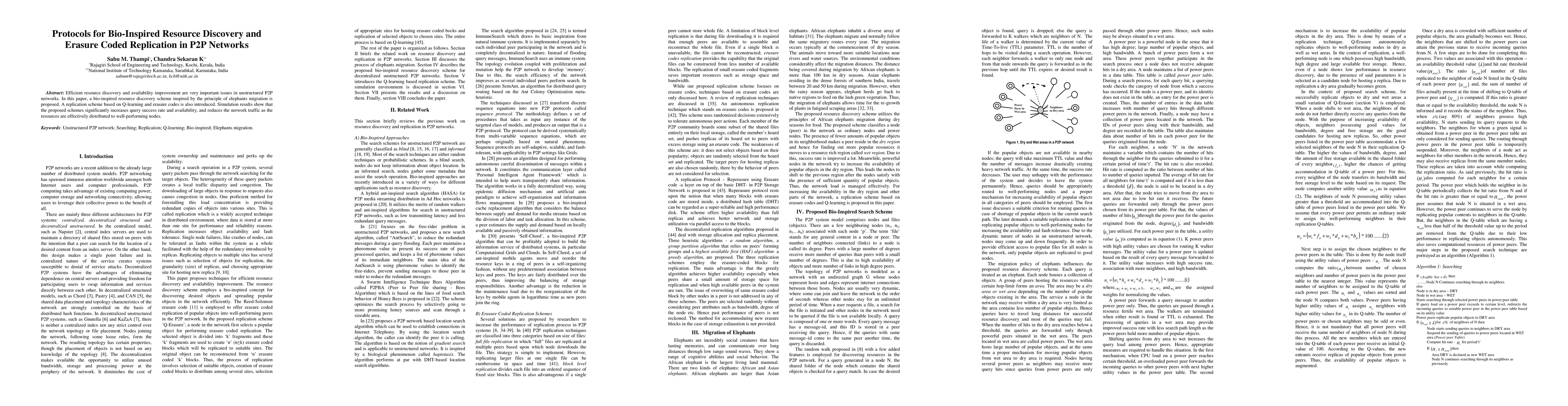 A bio-inspired resource discovery scheme and erasure-coded replication method are proposed for P2P networks, significantly improving query success rates and network availability while reducing traffic.