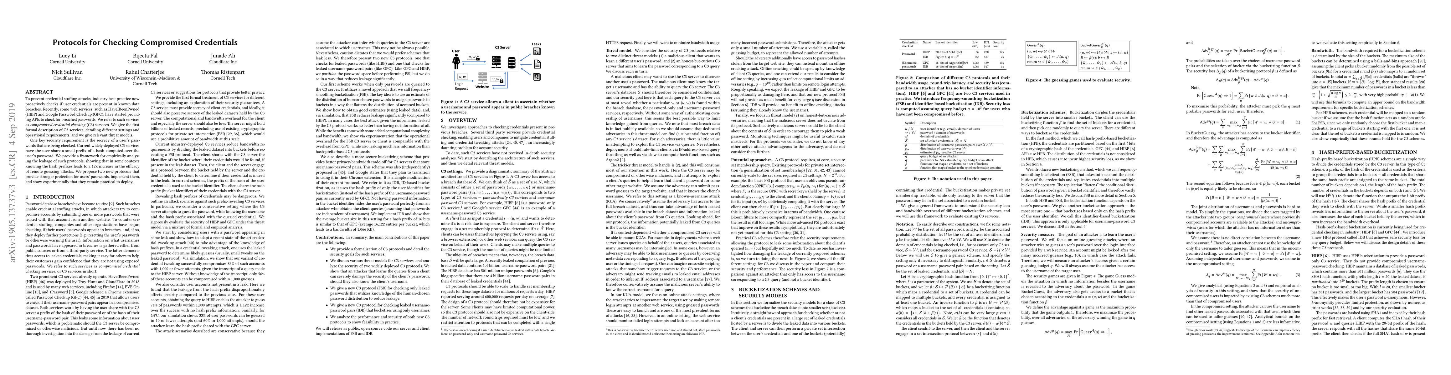This paper formally describes compromised credential checking (C3) services used to prevent credential stuffing attacks. It reveals that current C3 services, which require users to share hash prefixes of their passwords, can increase vulnerability to remote guessing attacks by up to 12 times. The authors propose and demonstrate two new protocols that offer better protection for user passwords without compromising practicality.