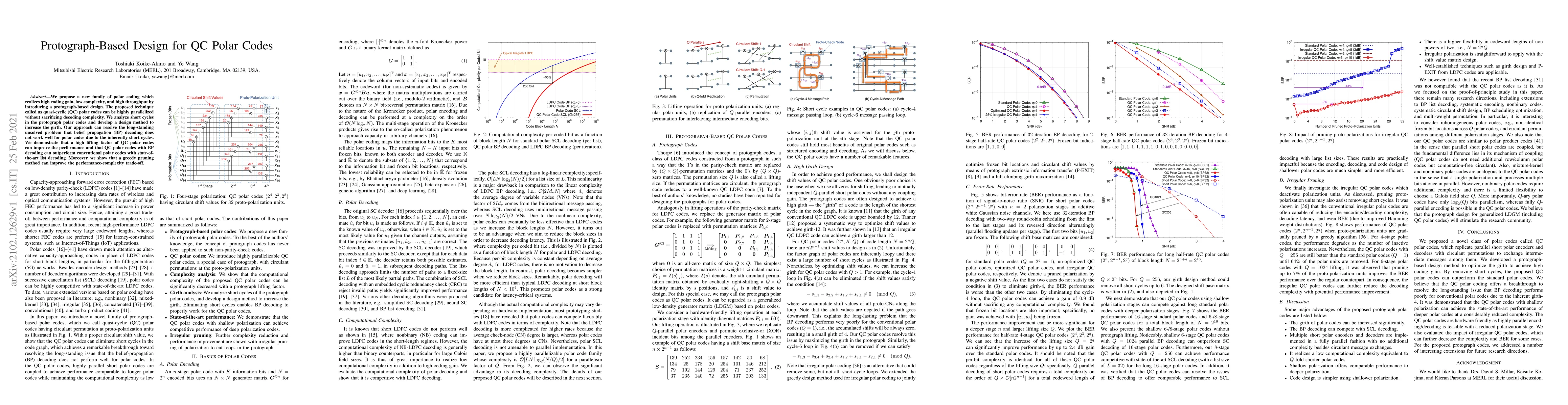 We propose a new family of polar coding which realizes high coding gain, low complexity, and high throughput by introducing a protograph-based design. The proposed technique called as quasi-cyclic (QC) polar codes can be highly parallelized without sacrificing decoding complexity. We analyze short cycles in the protograph polar codes and develop a design method to increase the girth. Our approach can resolve the long-standing unsolved problem that belief propagation (BP) decoding does not work well for polar codes due to the inherently short cycles. We demonstrate that a high lifting factor of QC polar codes can improve the performance and that QC polar codes with BP decoding can outperform conventional polar codes with state-of-the-art list decoding. Moreover, we show that a greedy pruning method can improve the performance-complexity trade-off.