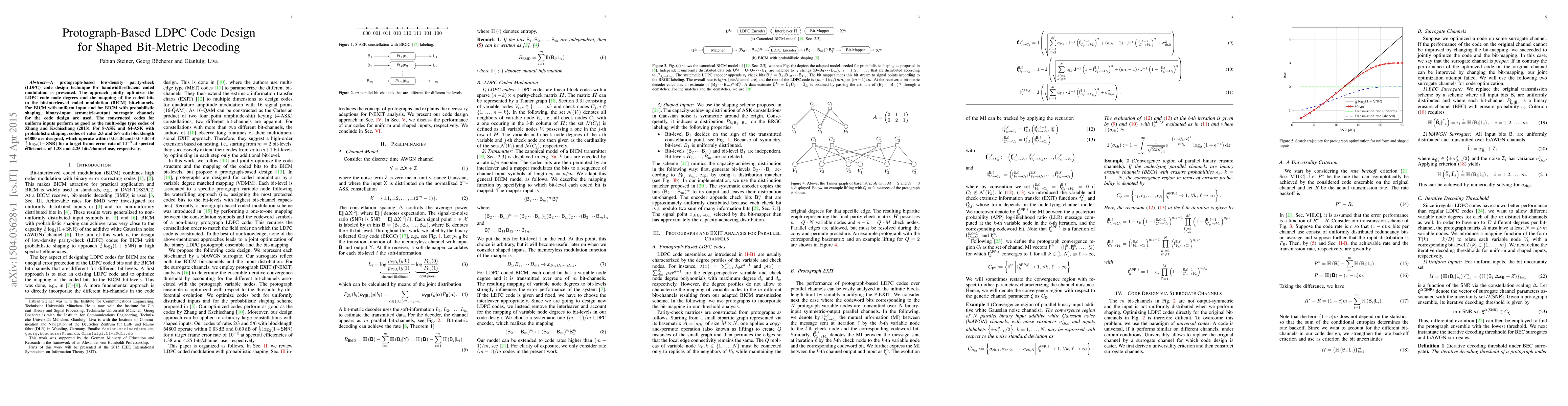 A protograph-based low-density parity-check (LDPC) code design technique for bandwidth-efficient coded modulation is presented. The approach jointly optimizes the LDPC code node degrees and the mapping of the coded bits to the bit-interleaved coded modulation (BICM) bit-channels. For BICM with uniform input and for BICM with probabilistic shaping, binary-input symmetric-output surrogate channels for the code design are used. The constructed codes for uniform inputs perform as good as the multi-edge type codes of Zhang and Kschischang (2013). For 8-ASK and 64-ASK with probabilistic shaping, codes of rates 2/3 and 5/6 with blocklength 64800 are designed, which operate within 0.63dB and 0.69dB of continuous AWGN capacity for a target frame error rate of 1e-3 at spectral efficiencies of 1.38 and 4.25 bits/channel use, respectively.