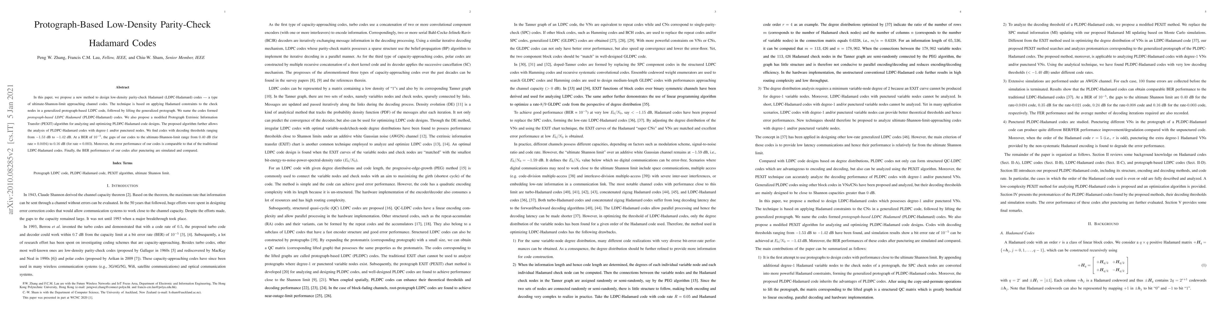Researchers propose a new method for designing low-density parity-check Hadamard codes with improved error performance, achieving decoding thresholds and gaps close to the ultimate-Shannon-limit.