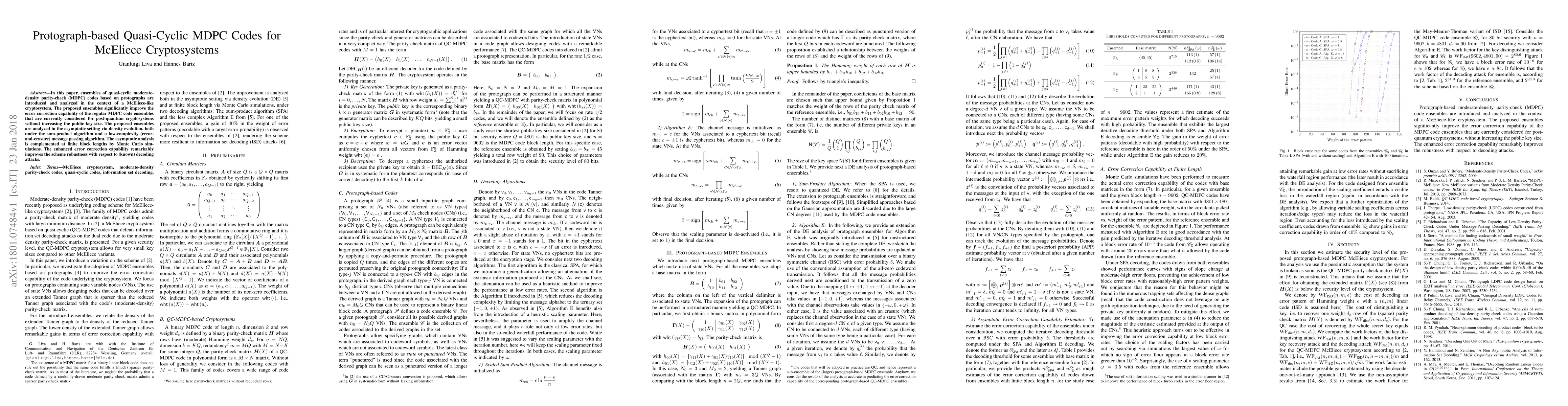 This paper introduces quasi-cyclic moderate-density parity-check (MDPC) codes based on protographs for McEliece cryptosystems, significantly improving error correction without increasing public key size. The analysis uses density evolution and Monte Carlo simulations, showing enhanced robustness against decoding attacks.