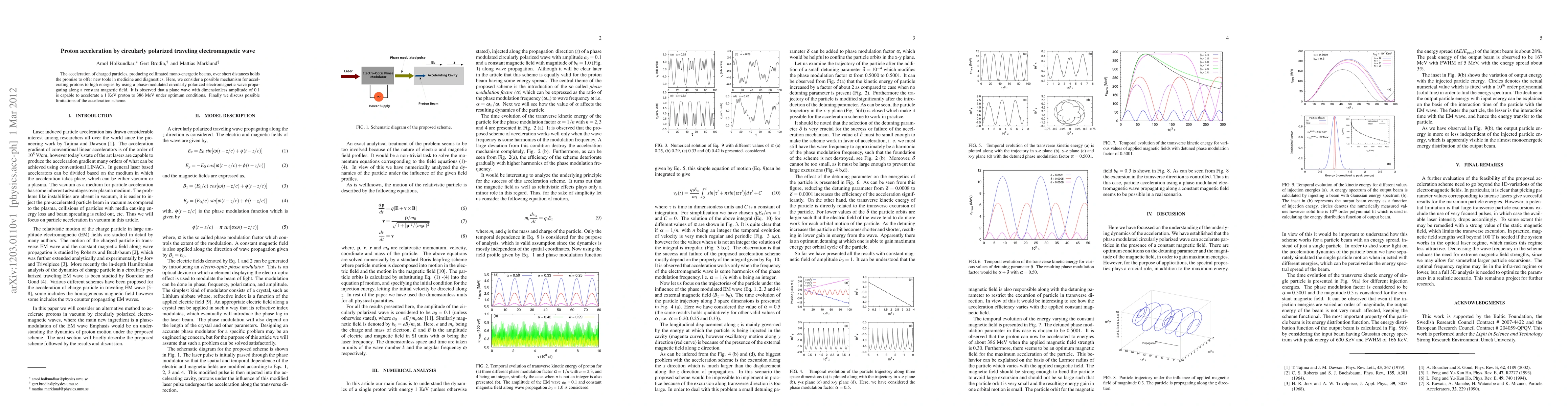 This research explores a mechanism for accelerating protons to high energies using a phase-modulated circularly polarized electromagnetic wave along a constant magnetic field, demonstrating the potential to produce collimated mono-energetic beams for medical and diagnostic applications. Under optimal conditions, a plane wave with an amplitude of 0.1 can accelerate a 1 keV proton to 386 MeV.
