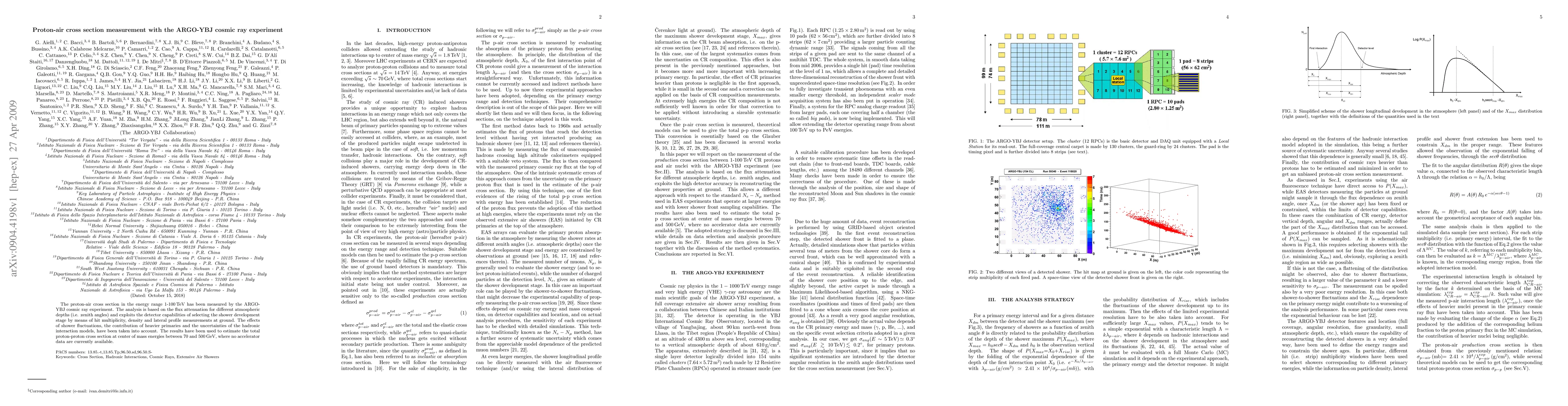 The ARGO-YBJ experiment measures the proton-air cross section from 1-100 TeV, analyzing flux attenuation across varying atmospheric depths. The study estimates the total proton-proton cross section for energies between 70 and 500 GeV, where accelerator data is lacking.