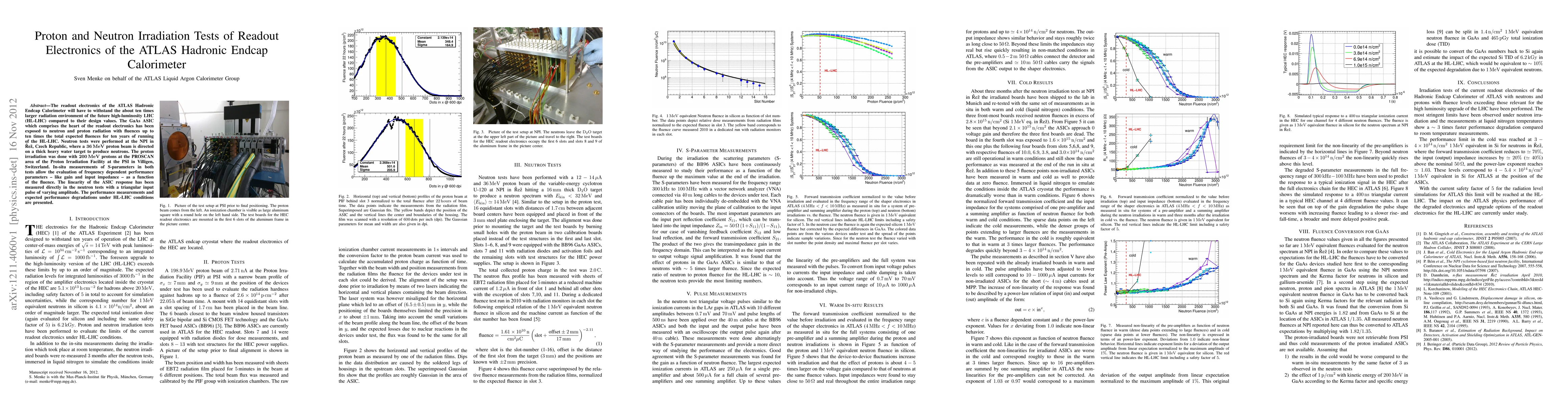 This paper reports on proton and neutron irradiation tests of the readout electronics for the ATLAS Hadronic Endcap Calorimeter, designed to evaluate its performance under the higher radiation levels expected in the future high-luminosity LHC. The tests reveal frequency-dependent performance parameters and the expected degradation of the GaAs ASIC under HL-LHC conditions.