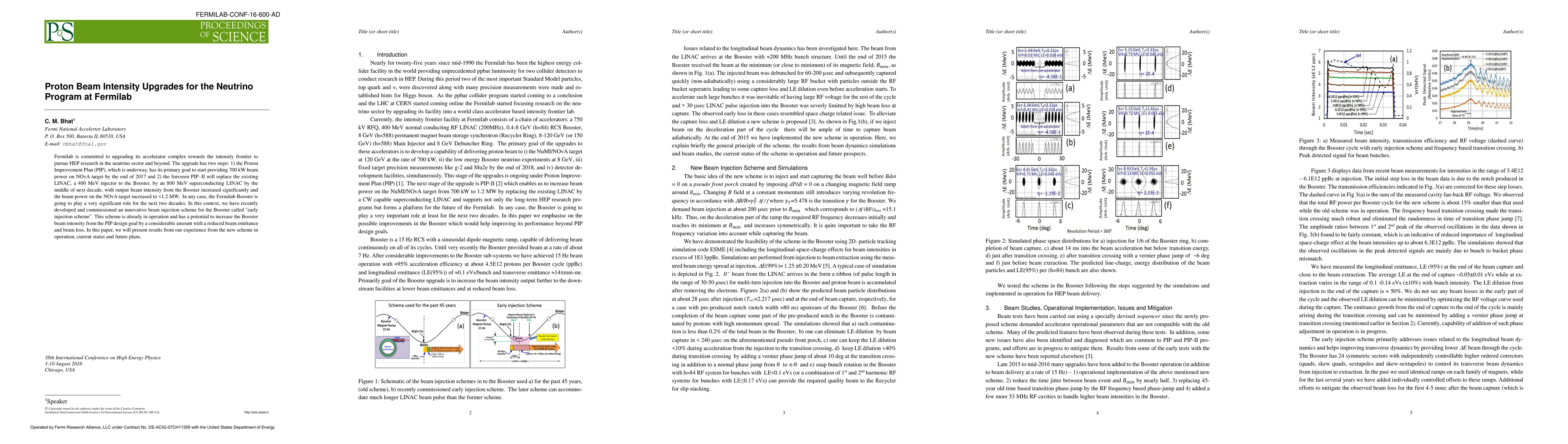 Fermilab is enhancing its accelerator complex to boost proton beam intensity for neutrino research, with the Proton Improvement Plan (PIP) underway and PIP-II planned. An innovative "early injection scheme" for the Booster has been developed to significantly increase beam intensity and reduce losses.