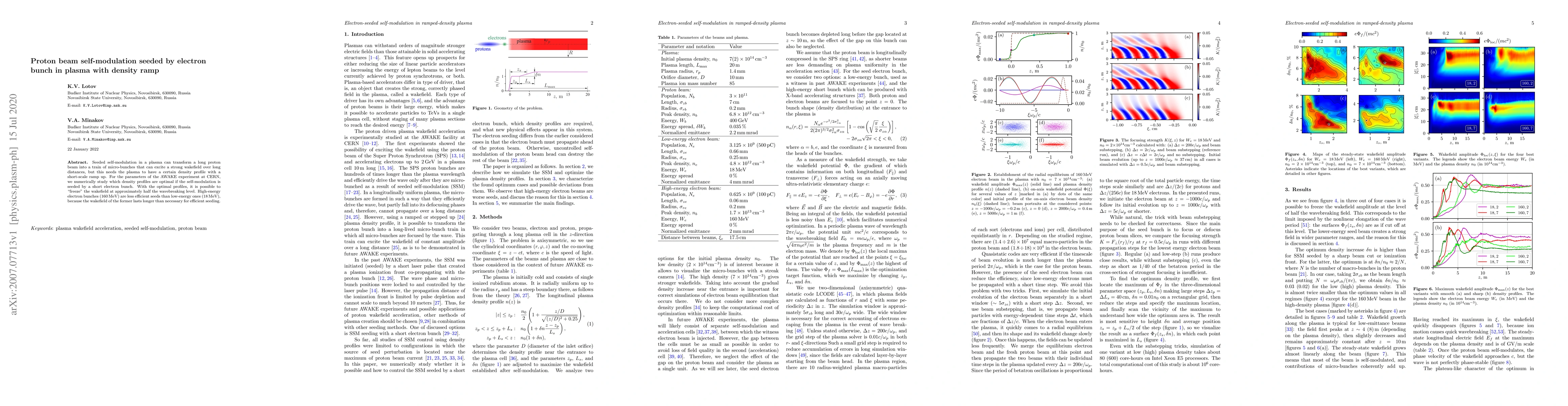 This paper investigates optimal plasma density profiles for proton beam self-modulation seeded by an electron bunch, focusing on the AWAKE experiment parameters. The study finds that low-energy electron bunches (18 MeV) are more efficient than high-energy ones (160 MeV) in generating a strong wakefield over long distances.