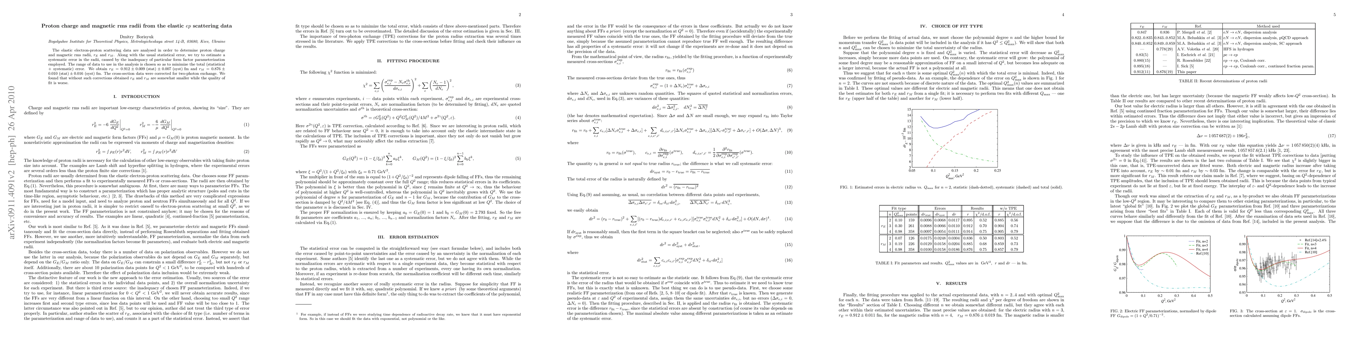Researchers analyzed elastic electron-proton scattering data to determine proton charge and magnetic rms radii, finding r_E = 0.912 fm and r_M = 0.876 fm with some systematic error.